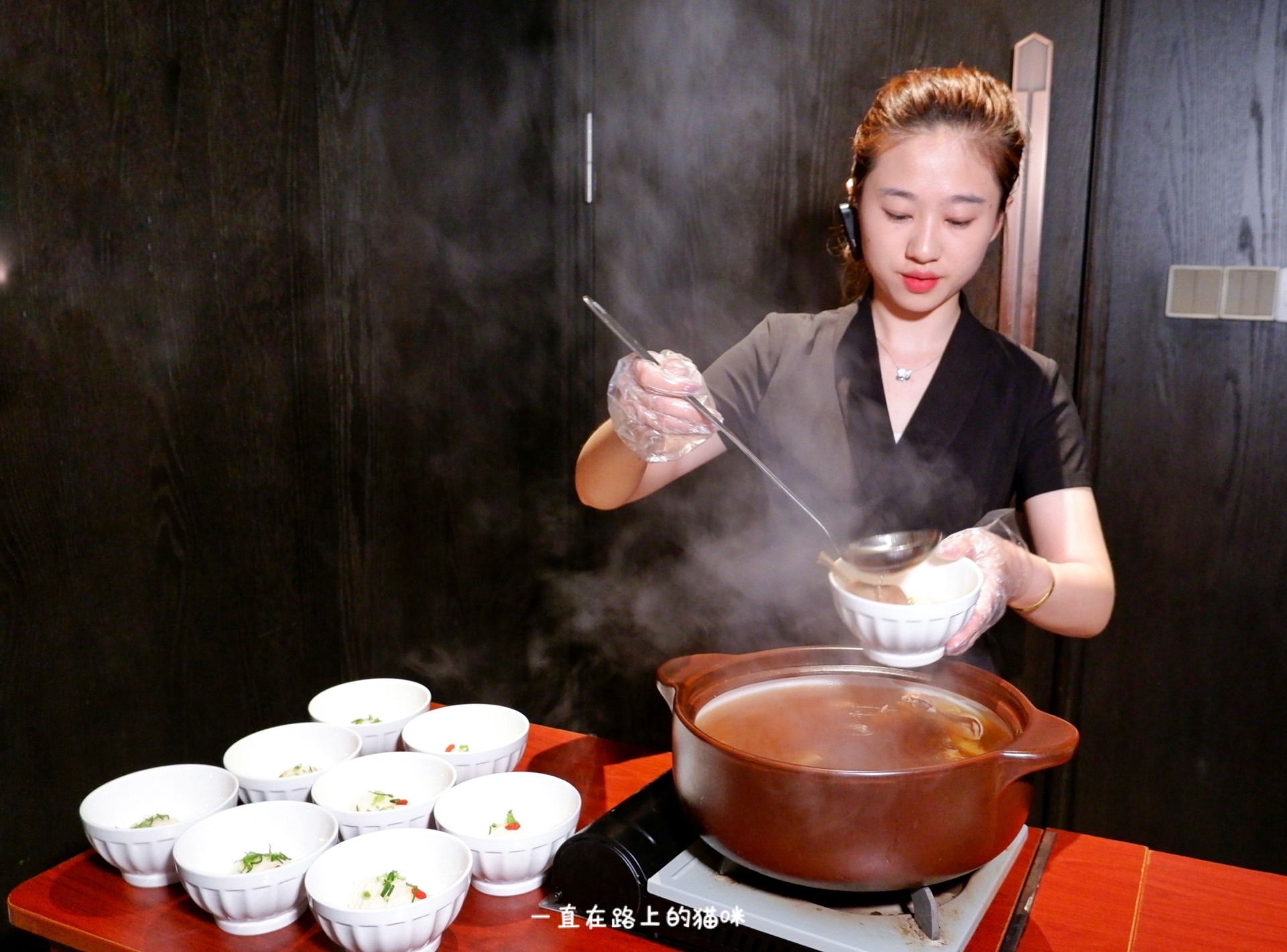 一人一份的整条大辽参也太豪气了,里面加了麦仁增加口感,黑松露的香气沁入汤中,下面咕噜咕噜的加热越煮越入味。
