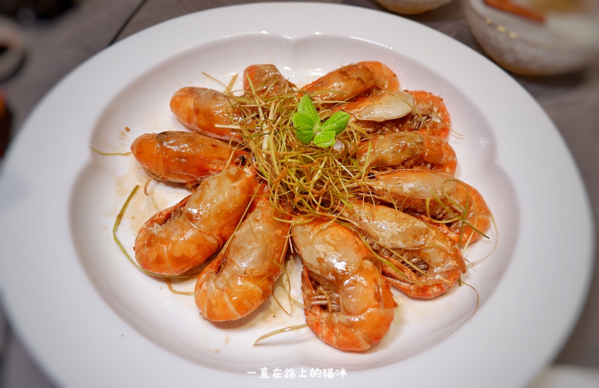 罗氏虾都带膏,金黄泛红的膏特别好吃,用秘制美极酱和香茅草做的,虾肉满是香气,入味好吃。