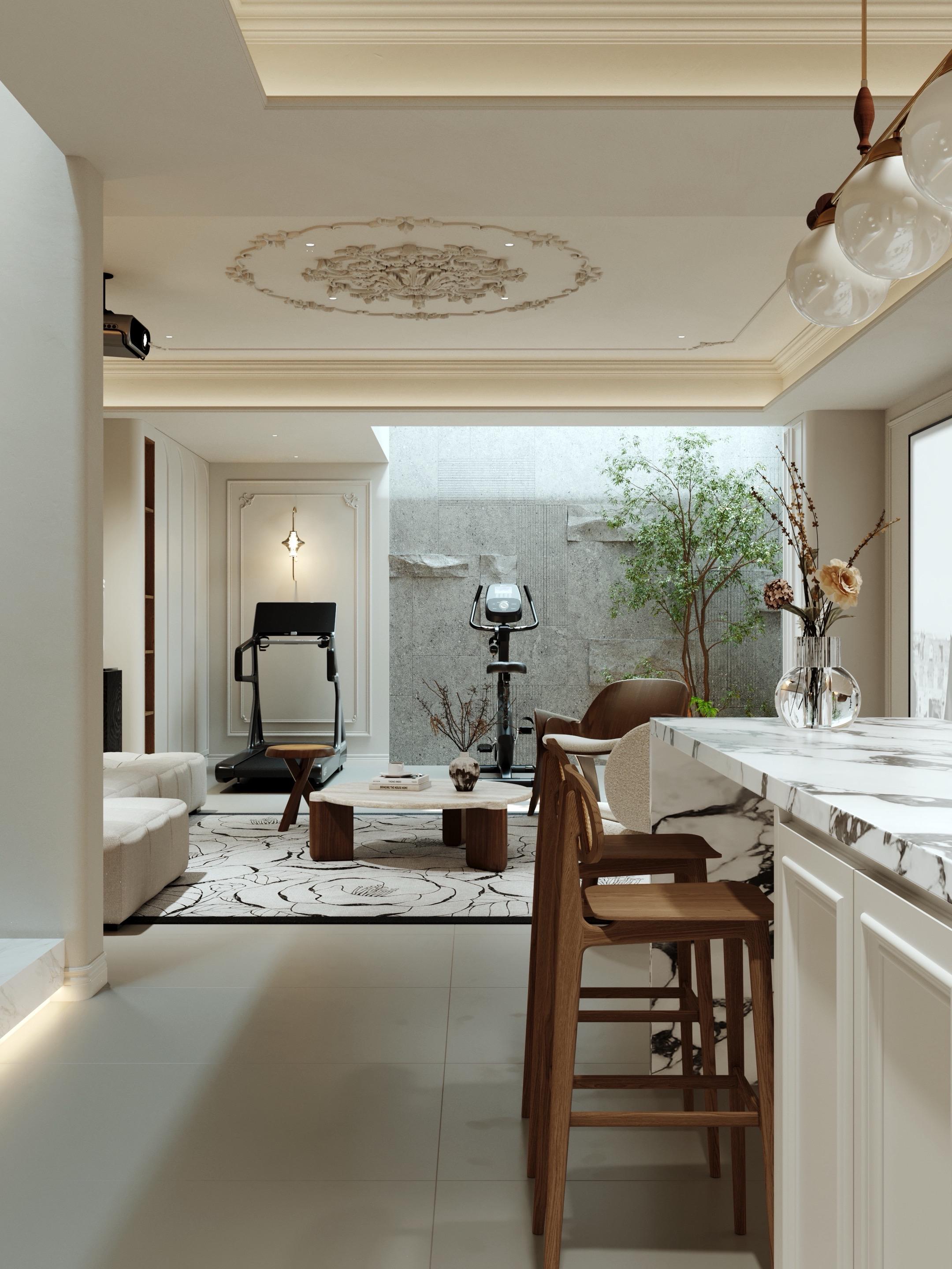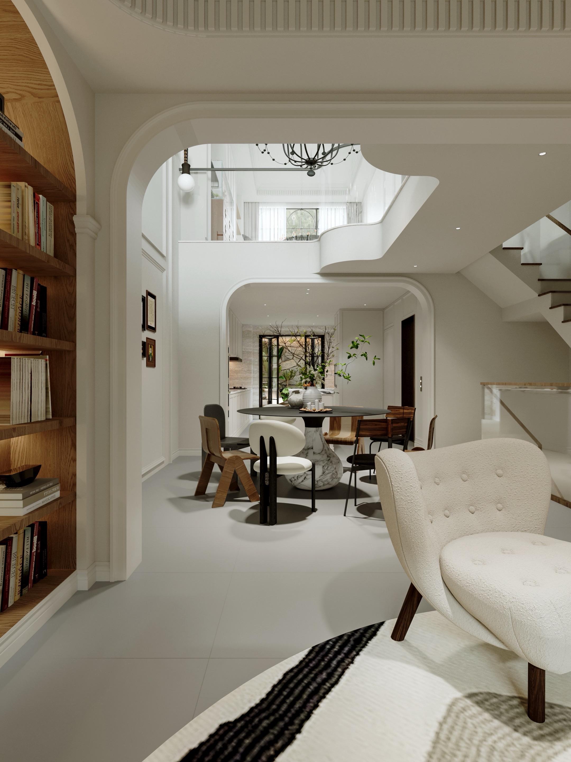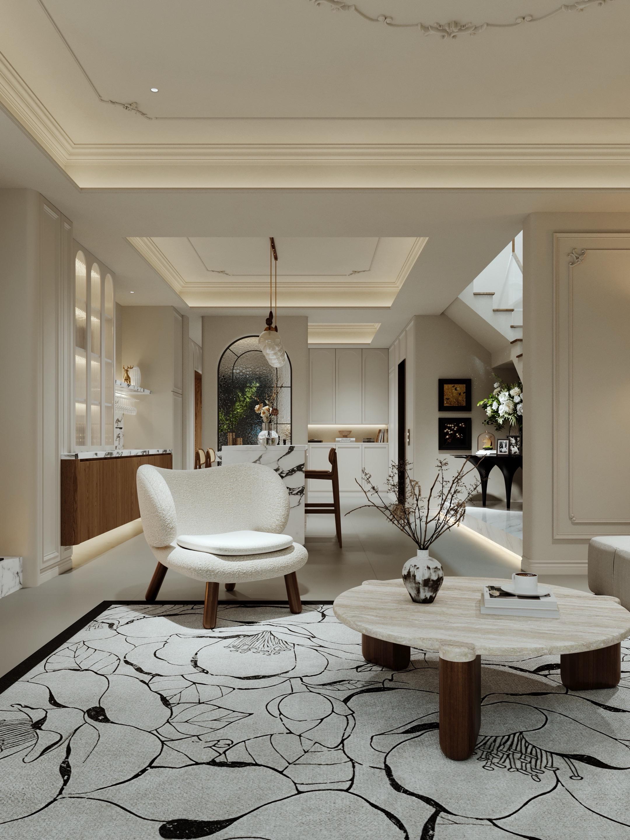当法式浪漫遇上昆明☁️奶油系别墅太绝了。"昆明的阳光☀️配奶油法式风也太搭了! 软糯墙面+复古石膏线,慵懒又精致 仿佛住在南法庄园里~ 联排别墅设计
