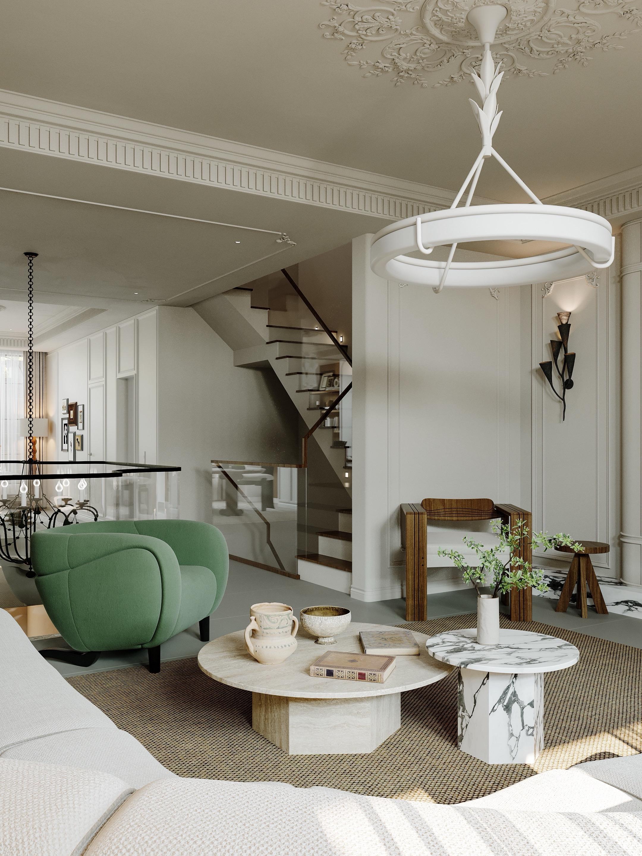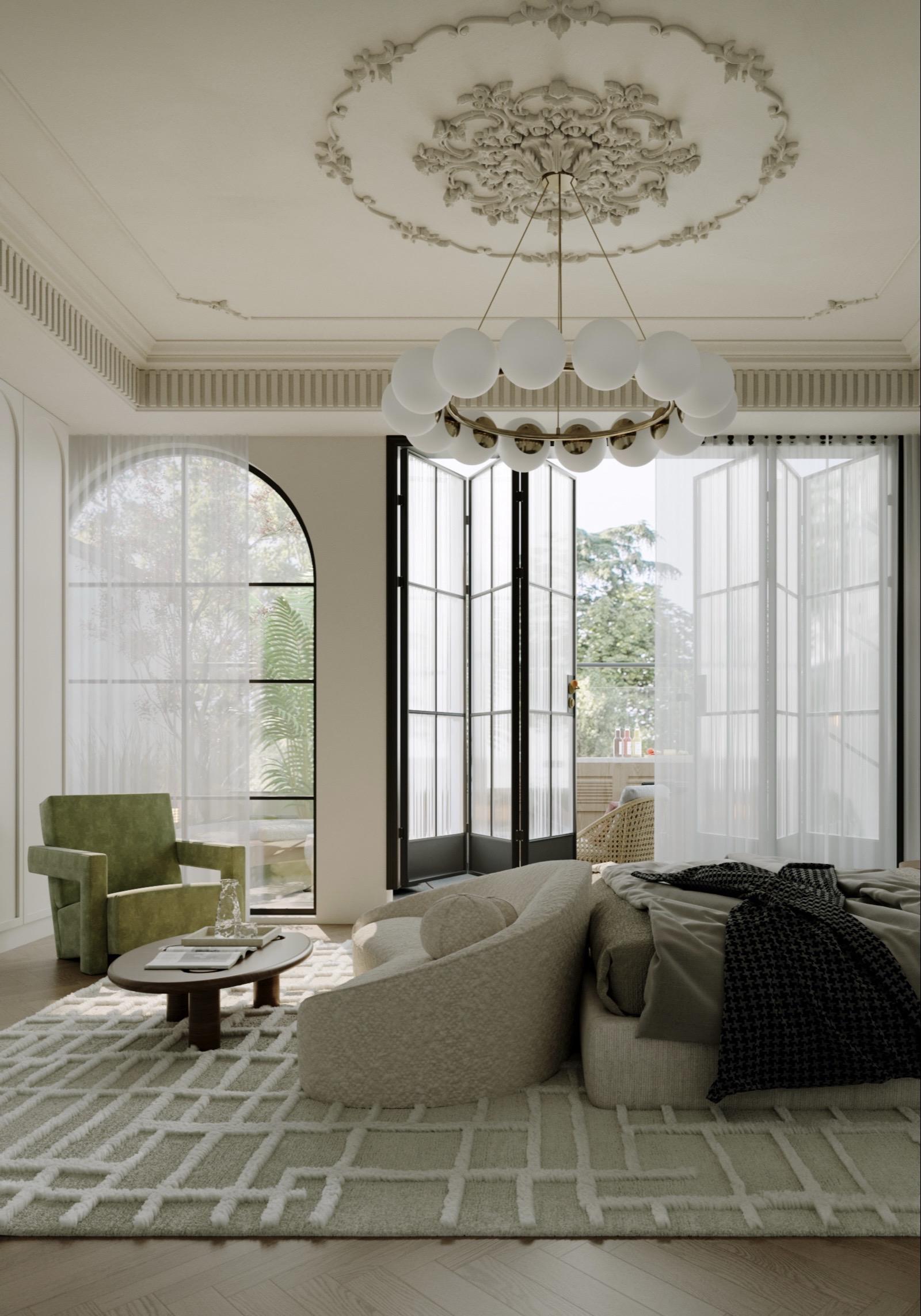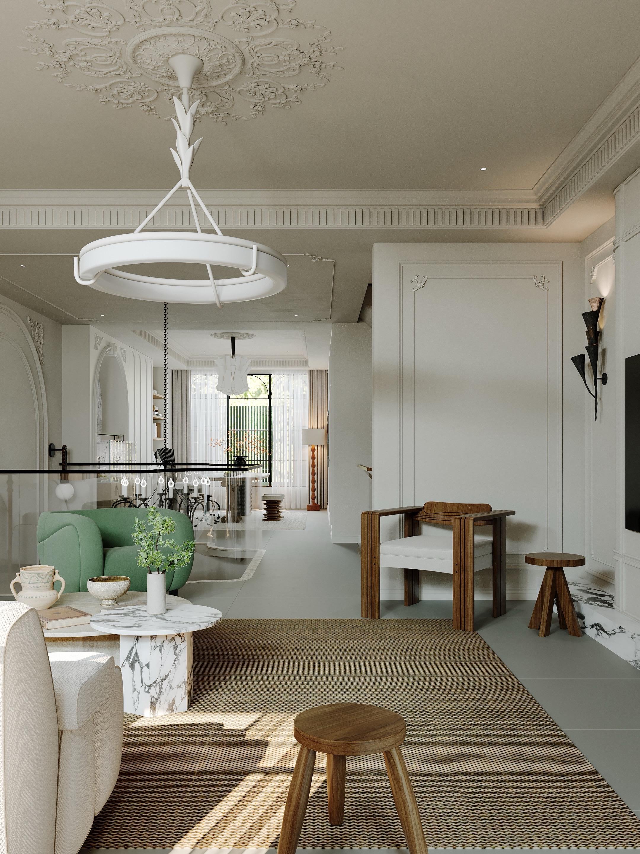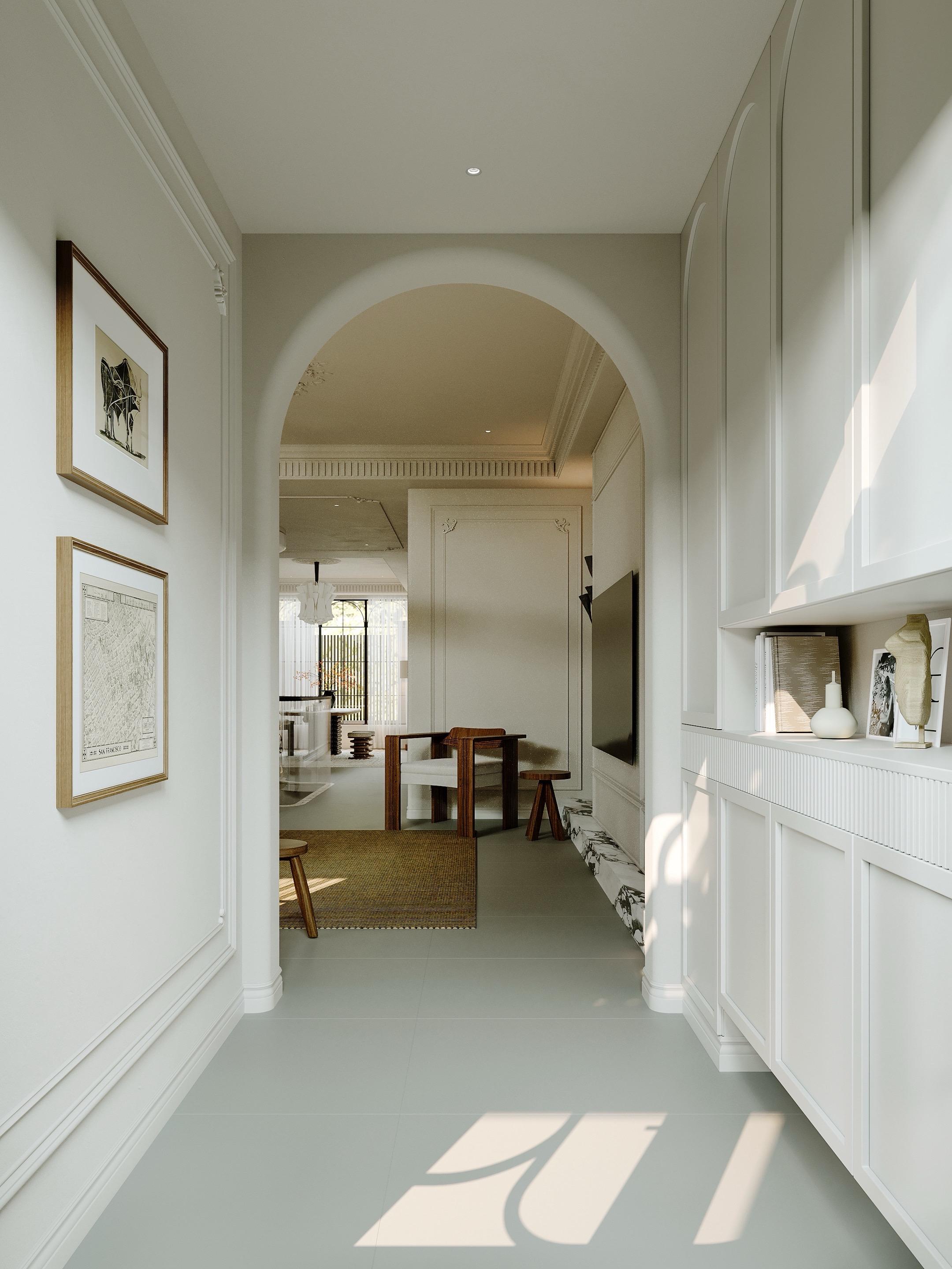 当法式浪漫遇上昆明☁️奶油系别墅太绝了。"昆明的阳光☀️配奶油法式风也太搭了! 软糯墙面+复古石膏线,慵懒又精致 仿佛住在南法庄园里~ 联排别墅设计