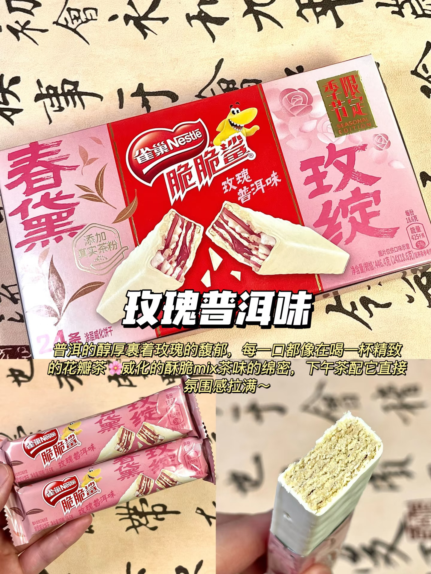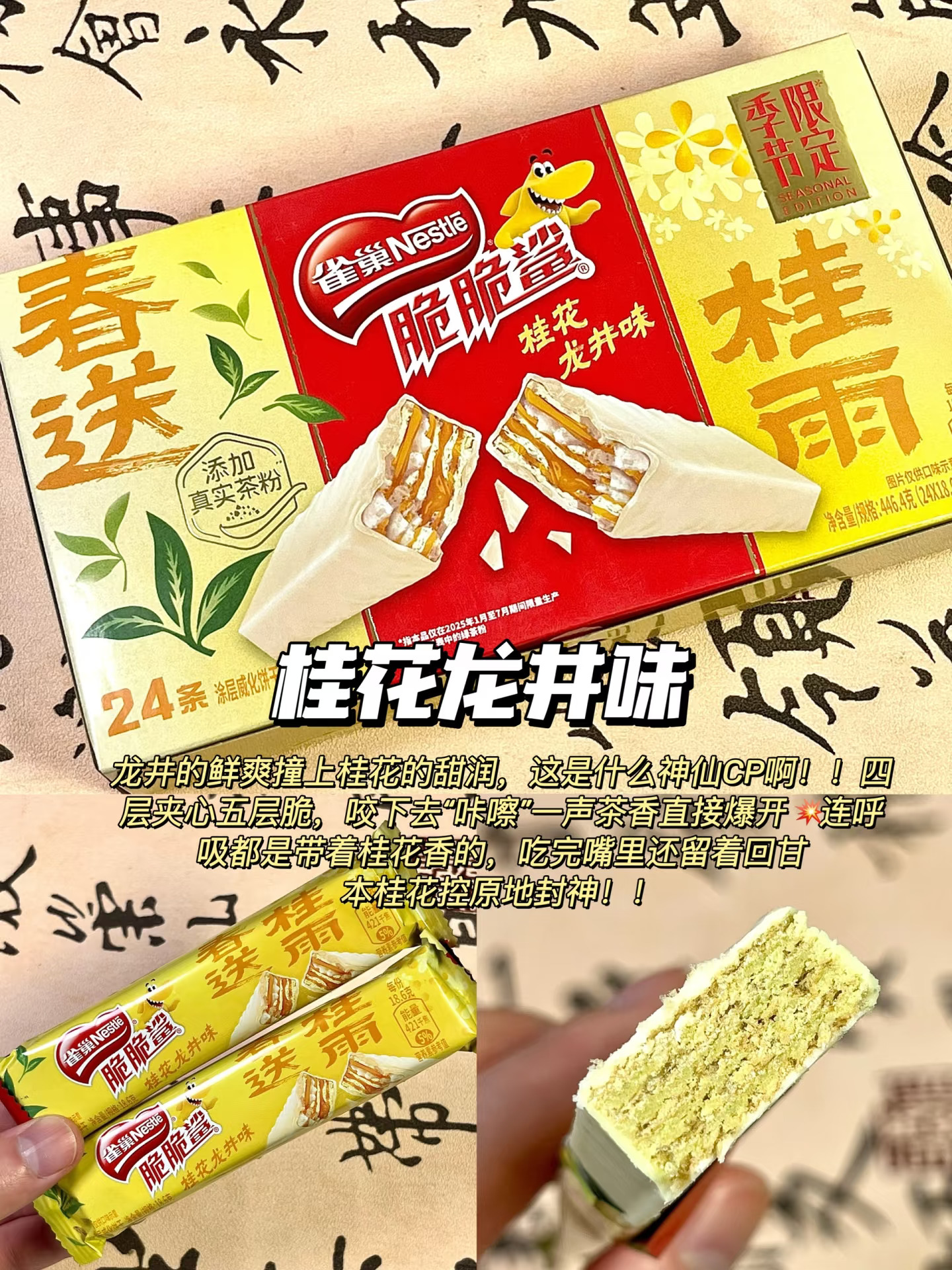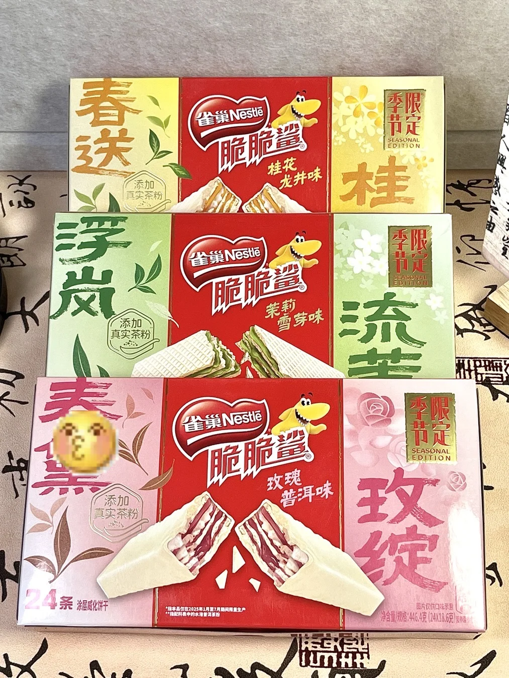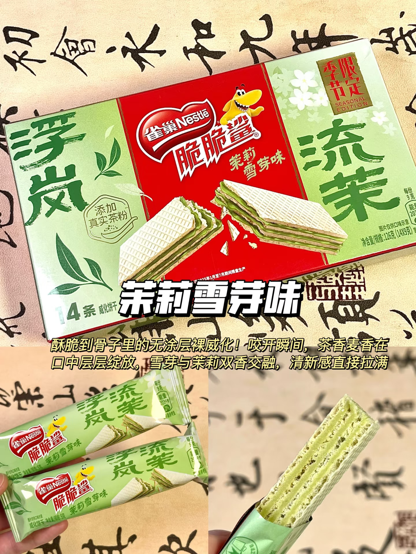 谁懂啊家人们!!脆脆鲨新出的季节限定直接戳中我的心巴,中式茶味的威化💥打开包装就是扑面而来的茶香,咬一口酥到掉渣,茶香在嘴里疯狂暴击✨ 本i茶星人原地起立致敬!! - 🌸茉莉雪芽味——真的好绝!! 裸威化的设计也太懂了!!轻薄酥脆到不行,茉莉的清香和雪芽的甘醇🌿像在嚼带有茶香的风一样轻盈,配茶喝直接清爽到灵魂出窍!!怕腻的宝给我锁死这盒!! 🍵桂花龙井味——香到跺脚!! 龙井的鲜爽撞上桂花的甜润,这是什么神仙CP啊!!四层夹心五层脆,咬下去“咔嚓”一声茶香直接爆开💥连呼吸都是带着桂花香的,吃完嘴里还留着回甘,本桂花控原地封神!! 🌹玫瑰普洱味——把浪漫吃进嘴里!! 普洱的醇厚裹着玫瑰的馥郁,每一口都像在喝一杯精致的花瓣茶🌸威化的酥脆mix茶味的绵密,下午茶配它直接氛围感拉满~姐妹们听我的!!配冷泡茶真的绝上加绝!! - 重点是!!0反式脂肪吃起来完全没负担!!本吃货可以放心咔咔炫了🥳春日阳光正好 坐在窗边啃着茶香威化喝着茶, 这不就是我梦想中的松弛感生活吗!! 茶味脑袋别犹豫!!看到直接冲!! 这波季节限定不冲真的会后悔啊啊啊!!💨