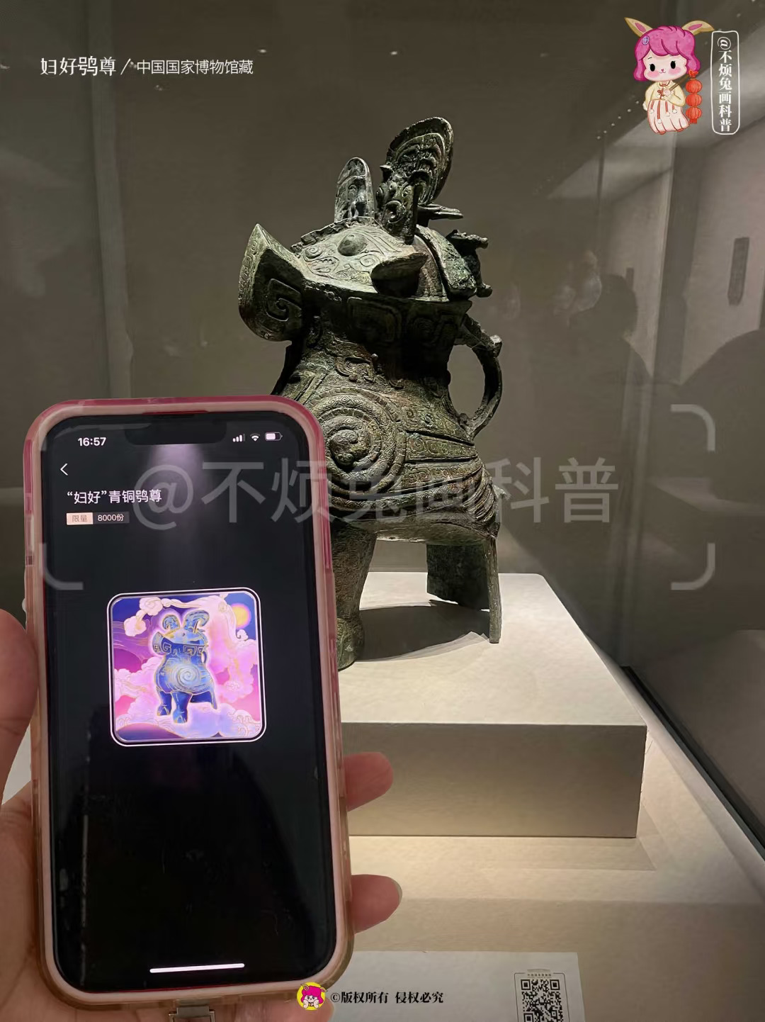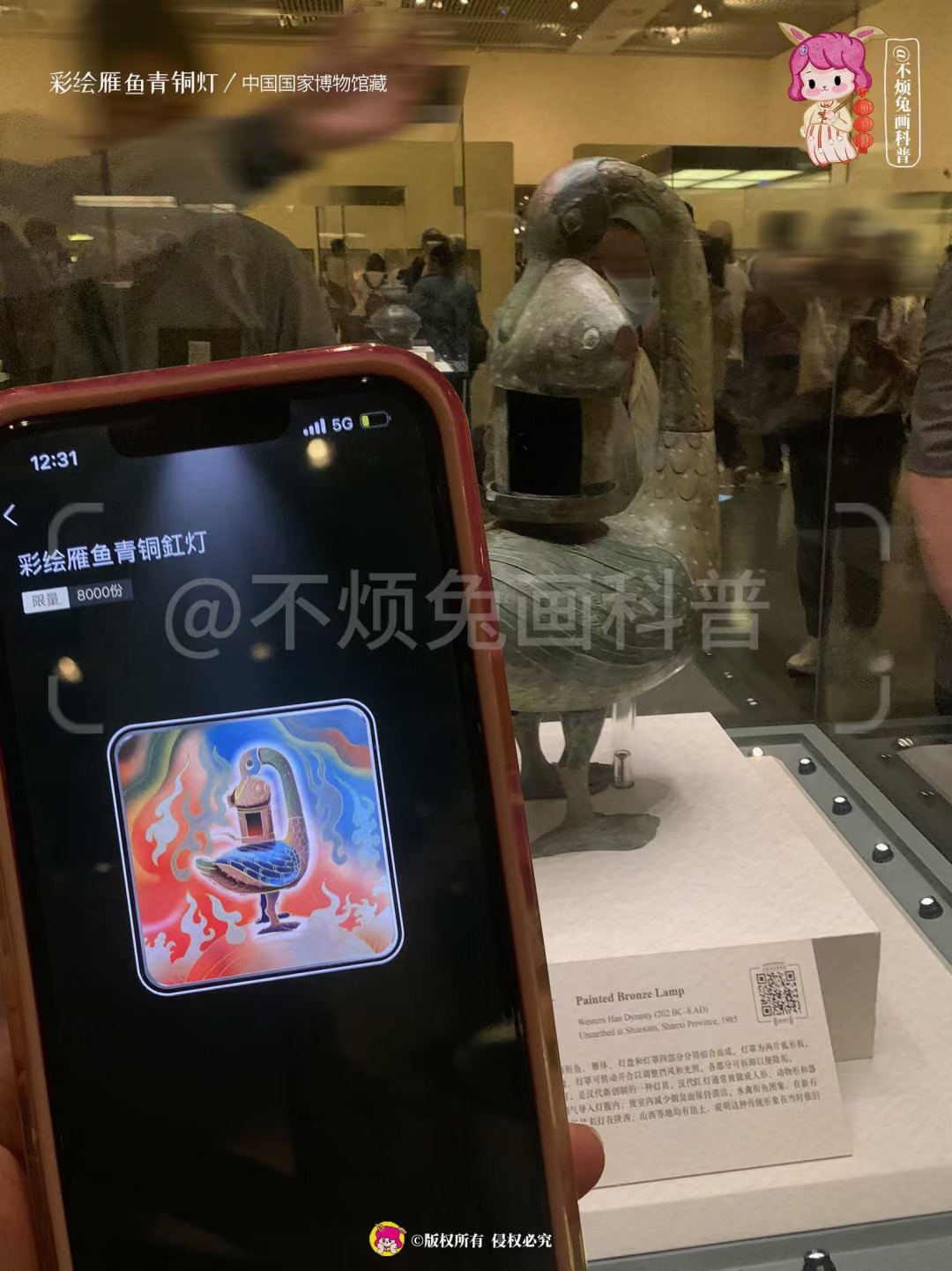 🔸在鲸探收藏了限量数字文物,我这次也专门带着鲸探上的数字文物去博物馆,一边看着实物,一边用手机查看数字文物的详细信息。这种虚实结合的体验,简直不要太爽!不仅能更深入地了解文物背后的故事,还能从不同角度欣赏它们的美,视觉体验直接拉满!看见喜欢的文物也会记下,期待着那天也能在从鲸探上成为它的藏家。