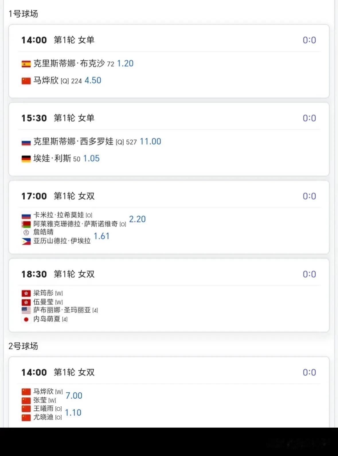 2、❎中国马烨欣1-6、2-6不敌西班牙布克沙;
