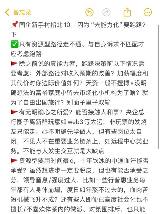 🚩有无明确心之所爱?能否接触人和事?央企总行圈子离新鲜玩意如web3等太远,非玩票的发烧友只能走;心不明确先学做人,但有些岗位太自闭,不见人不在重要业务链条上,如远程中心类业务。不能与人发生交互就是大缺点