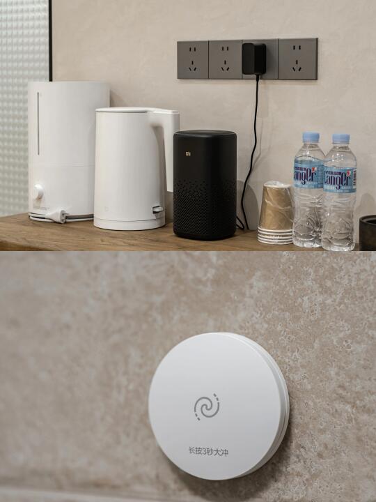 可日租 周租 月租 半月租 1️⃣房间布局: 4居1厅1厨5卫 客厅80平 院子100平 一楼: 客厅+院子+厨房+房间1(1.8米大床) 二楼: 客房+阳台+晾衣区 房间2:1.8米大床 房间3:1.8米大床 房间4:套房∶1.8米大床+1.8米床 (共计5张1.8米大床) 每间房都有干湿分离独卫、美的空调、小米音响、小米电热毯、小米热水壶、小米加湿器、小米热风浴霸、恒洁智能马桶、电吹风等。 2️⃣厨房有:3300W大功率电磁炉、智能冰箱、蒸锅、火锅鸳鸯锅、烤箱、各种锅碗瓢盆等。 3️⃣客厅有:餐桌、洗衣房、书架、麻将机、酒柜、空花瓶、沙发、4k高清投影仪、一键上水茶台、饮水机、挂烫机等。 4️⃣院子有:围炉烤茶、烧烤台、石板烧、各种休息区,整个院子配备了40多把椅子,走到哪都能坐。 可以在民宿门口上下车,下车走5米就到