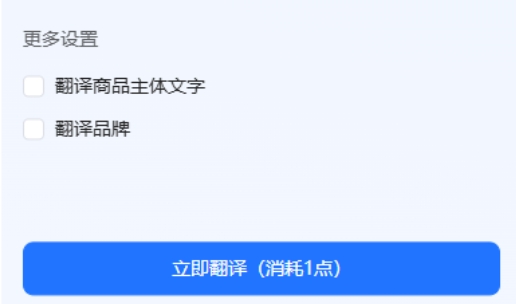 此外,在“更多设置”中,我们可以针对不同的情况去做出一些个性化的需求设置,比如可以选择是否“翻译商品主体文字”或者“翻译品牌文字”,如果您不想让 AI 翻译掉自己家的品牌 Logo 或者产品的型号信息的话,只需要把这两个复选框都给去掉就行了,十分方便且智能化!