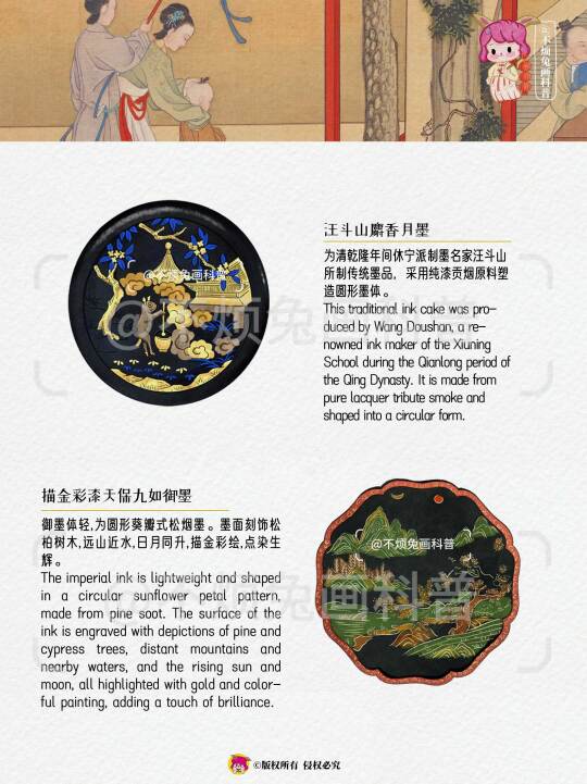 为清乾隆年间休宁派制墨名家汪斗山所制传统墨品,采用纯漆贡烟原料塑造圆形墨体