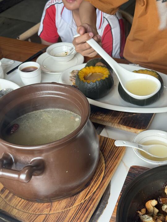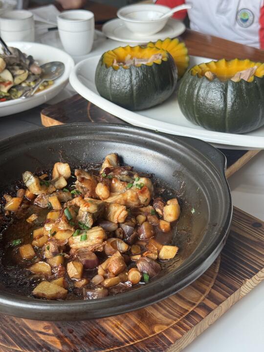 经济实惠的本地人饭馆子🍚 . 🌈本地人外出自吃的饭店! 爸妈来了适合聚餐的玉林特色菜, 有点小贵但是味道👍 . 📍大海的私厨(图2~9) 鸽子贝贝南瓜盅很特色! 两个🎃一大锅汤🥣清甜好喝 鳗鱼啫啫煲👍每次去都点 📍桂满园(图10~16) 玉林菜!假篓酿,油茶,脆皮鸽这里都能吃到, 环境也好,适合家庭聚餐 .