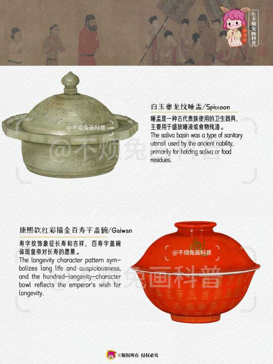 唾盂是一种古代贵族使用的卫生器具,主要用于盛放唾液或食物残渣