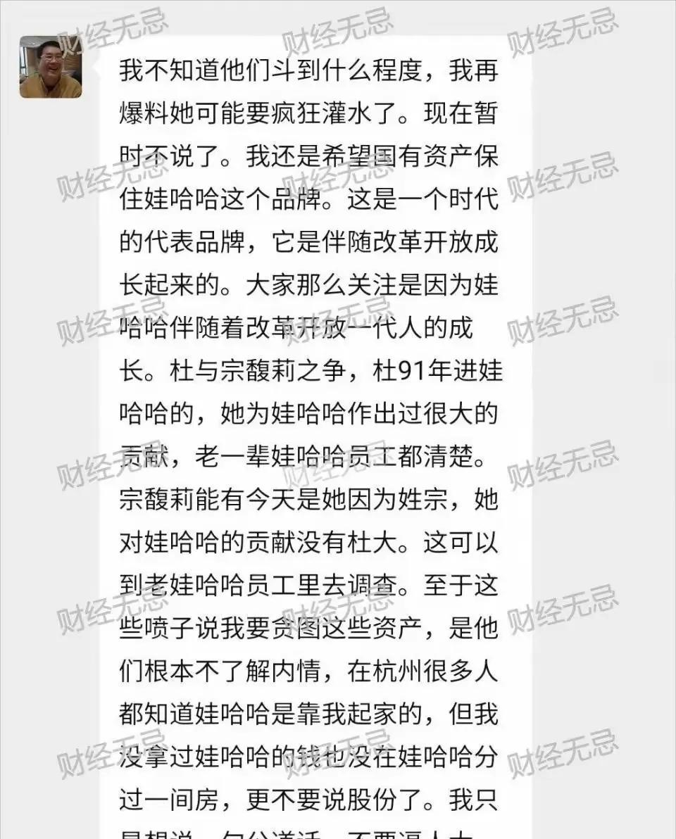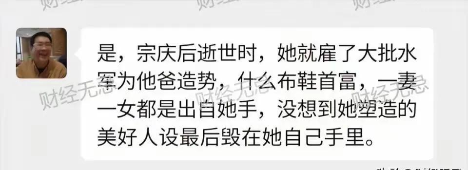 宗馥莉腹背受敌,伤她最深的竟然是她的亲叔叔。亲叔叔公开承认杜建英生的三个孩子都已进入族谱,还指责宗馥莉六亲不认自私自利一人独大操控水军。 亲叔叔说宗馥莉没有杜建英的贡献大,娃哈哈是靠他起家的,他和杜建英为娃哈哈立下了汗马功劳,宗馥莉就是靠着她爸爸上位的,因为她姓宗。亲叔叔功高盖主却没拿到任何好处,所以亲叔叔怒了。 从亲叔叔的诉说中,方知宗馥莉的确是干大事的人,搞印刷厂开香精厂断了七大姑八大姨的生意,所以才被亲叔叔说成是六亲不认。 这个叔叔对着全网指责宗馥莉,火上浇油让网友一片差评,不喜欢宗馥莉可以不回应,公开力挺杜建英,踩踏自己的亲侄女,这样的六亲不断,必然越来越乱。