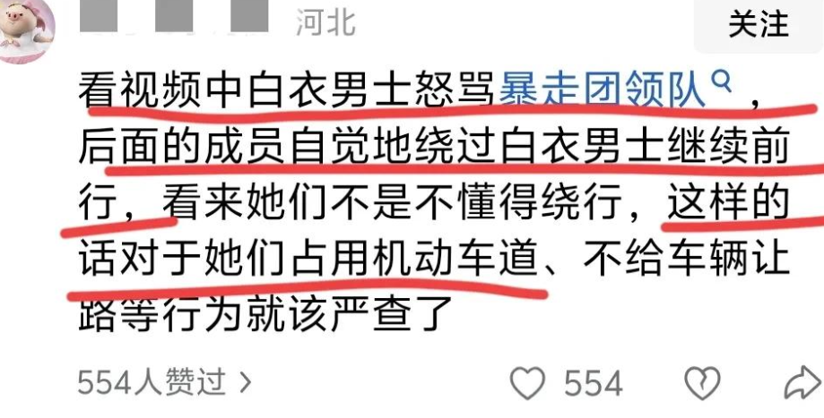 当白衣市民的怒骂换来暴走团退避,这场现实版"硬刚"或许比任何网络声讨都更具警示意义。它告诉我们:规则面前没有特殊群体,年龄更不是挡箭牌。那些把马路当操场、将公序当儿戏的"暴走团",是时候收起"我老我怕谁"的傲慢了——毕竟,当救护车的鸣笛声再次响起,没有人能真正"绕着走"。