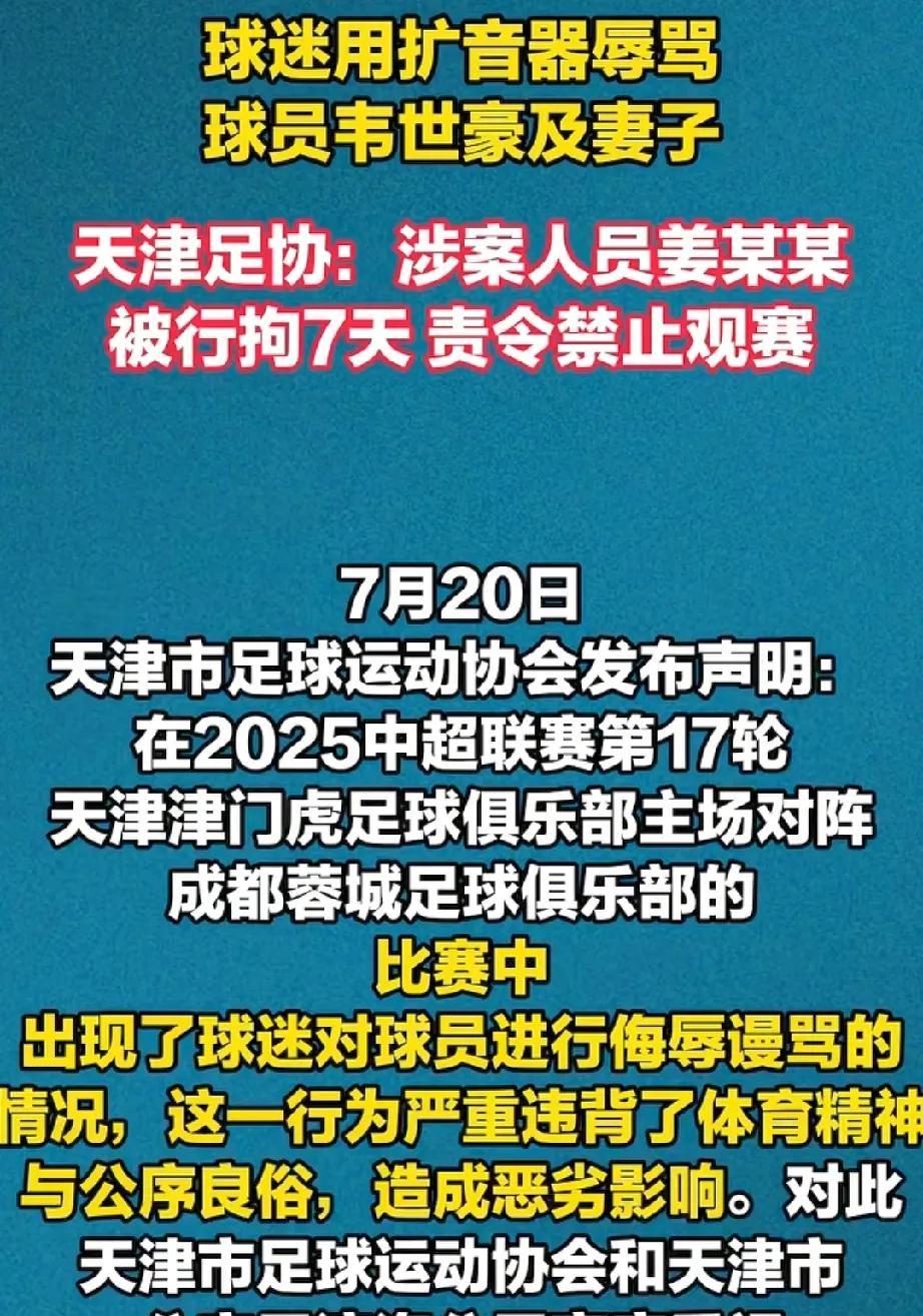 刑拘7日,并责令禁止观赛 早就该这样了,现在球场的球迷文化简直不堪入目。哪有一点世界六大联赛的样子,现在的联赛已经不敢带孩子去现场看球了。 足协应该及时出手,制定相关规定,将这些害群之马逐出赛场,还球迷一个良好的观赛体验。#足球# #中超# #无良球迷#