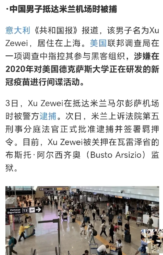 这个美国富国银行的毛晨月被限制离境,马上就有人脑洞大开联想到孟晚舟和前几天在意大利被抓的工程师徐泽伟,这是没有道理的。