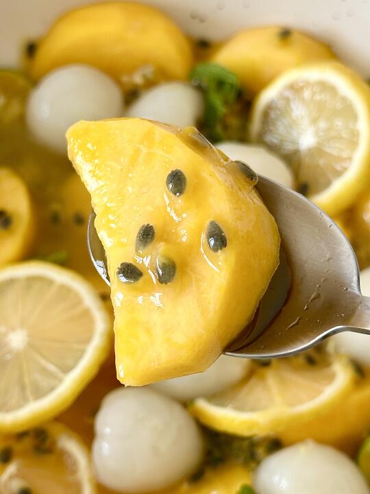 夏日消暑甜品🤍💛百香果渍荔枝黄桃