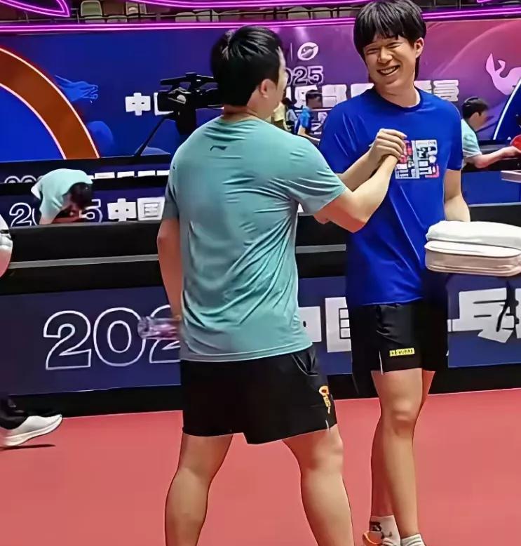 看他们笑,我也不禁咧嘴笑了! “乒超联赛”训练场地,樊振东、许昕、周启豪三个人在一起聊天。 这时王楚钦走过来,樊振东看见迎了上去,王楚钦亲切的喊着“东哥”,两兄弟笑着击掌! 王楚钦笑成了眯眯眼了,又看见东哥心里一定很高兴吧! 击个掌乐得跟什么似的,王楚钦那眼睛都笑没了缝儿。旁边许昕和周启豪看着也直乐呵,这画面真是暖暖的,国乒队内这气氛看着确实不赖。咱老百姓看着也开心,就爱看这些顶尖高手私底下也像邻家兄弟一样说说笑笑。 不过咱冷静琢磨琢磨,画面里这融洽劲儿,是不是多少有点被镜头“聚焦”过了?你琢磨啊,顶尖运动员训练比赛压力多大脑仁儿都得绷着,日常相处哪能时刻像这样阳光灿烂。他们也是普通人,训练苦了累了或者比赛没打顺溜,那脸色能好看?这些镜头没拍到或者剪掉的情绪片段,可能才是真实的另一面。别动不动就给人贴“兄弟情深”的金名片,压力之下,保持专业的距离和良性竞争可能更关键。 再说大头王楚钦,这“东哥”叫得亲热,笑是真心实意的。可别忘了,他现在位置和以前不一样了,顶级赛场的接班人焦点都在他身上打转。这每一声“东哥”,会不会也藏着点压力?得扛起队伍往前走,得不断突破自己,还得维系外界眼里和谐的队内生态。这份沉甸甸的责任,或许才是这明媚笑容下面真正压秤的东西。看着他笑,咱是不是更该多想想这小伙心里的担子有多沉? 还有一层,咱是不是也“绑架”了人家的友谊?粉丝太爱看这种温情互动,媒体自然追着拍。但对运动员本人呢?被我们拿着放大镜看每一帧笑容、每一次击掌、每一句招呼,会不会反而成为另一种负担?为了镜头前的“和谐”去刻意展示什么?咱看着是感动了,可别把这点日常互动整得变味儿了。让他们自然点,想笑就笑,想安静就安静,行不行? 各位读者你们怎么看?欢迎在评论区讨论。