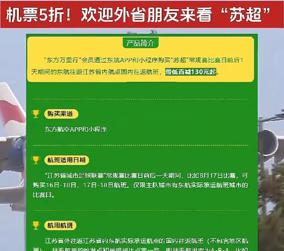 到江苏看苏超,机票打对折。苏州:跟我有什么关系 为了方便外省的球迷到江苏看苏超,苏南瑞丽航空对比赛日或比赛前一天购买前往无锡和常州的非江苏籍旅客可享受票面价的5折优惠。 苏南,本就是苏锡常这3个城市的统称。搞这个活动,你们跟苏州商量过没。