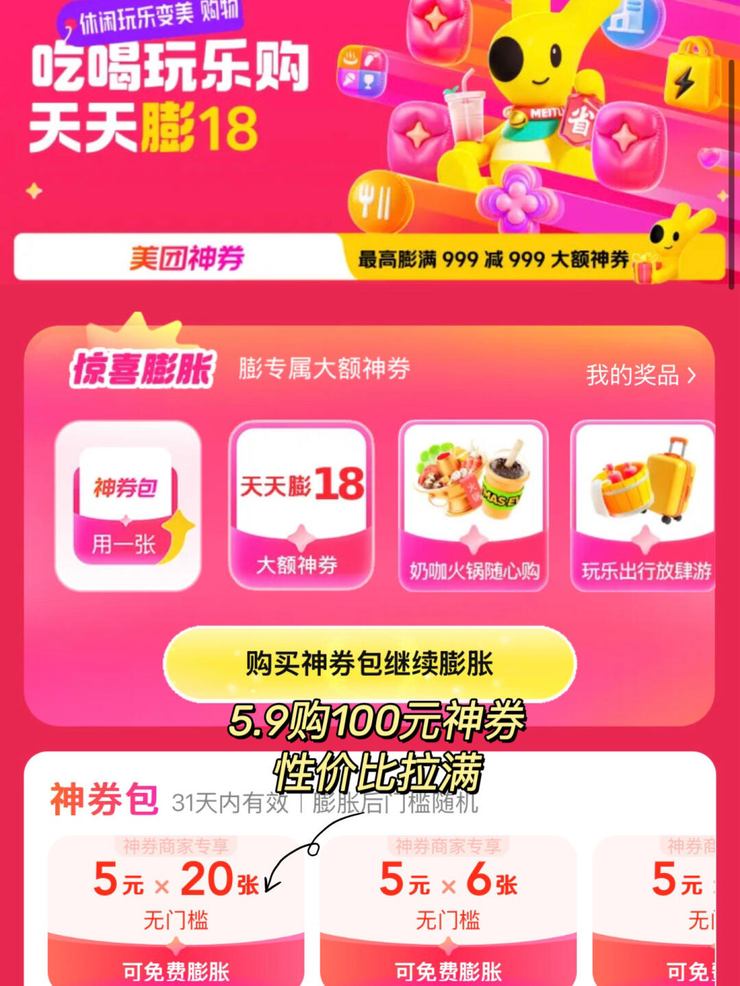 一代人有一代人的“刮刮乐”——咱现在吃饭前先“膨一下”,刮出的优惠券可比彩票实在多了! 不知道美团这个活动 直接亏大了 直接抄作业! 上美团🔍「天天膨一下254」进会场,每天1次免费膨18元神券的机会! 有券就能一直膨,这羊毛不薅简直亏大了! 想想看,去网红餐厅打卡、约闺蜜做美甲、周末去密室逃脱前,顺手膨一下,说不定就多减十几块,一顿饭钱直接省出两杯奶茶,不香吗? 更绝的是5.9r拿下100元神券包(20张5元),平均每张才两毛多!去咖啡馆减5块,逛超市减5块,随便探两家店就回本,性价比直接封神! 每周六早10点还有大招!0.01元抢30元券包(6张5元),这简直是白给的!手慢无,我闹钟都定好了,谁也别跟我抢! 以前总觉得领券够省了,现在才懂「膨胀」才是探店省钱天花板!不管是聚餐、逛街还是体验新项目,下单前先膨一下,花更少钱玩得更嗨,这才是精明干饭人的正确打开方式啊! 别等了!现在就去美团搜「天天膨一下254」,错过真的要拍大腿!吃饭前必膨一下,省钱技能拉满!