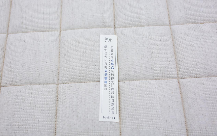 栖作旷野面料摸上去有棉麻的微微“磨砂感”,透气性和贴肤感都特别好。哪怕是夏天睡不铺床单,直接躺也完全OK。