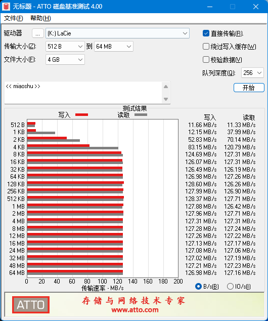 实测读取速度可达156 MB/s,写入148 MB/s,日常拷贝几十GB素材也能快速完成。基准测试中,4 GB文件在队列深度256下即能满速运转,性能稳定高效。