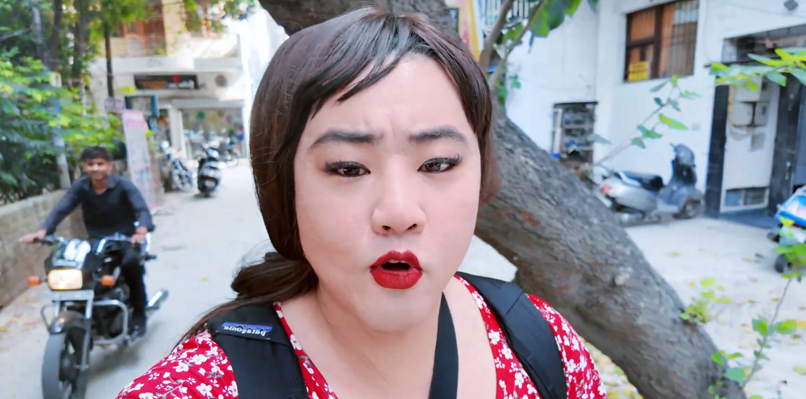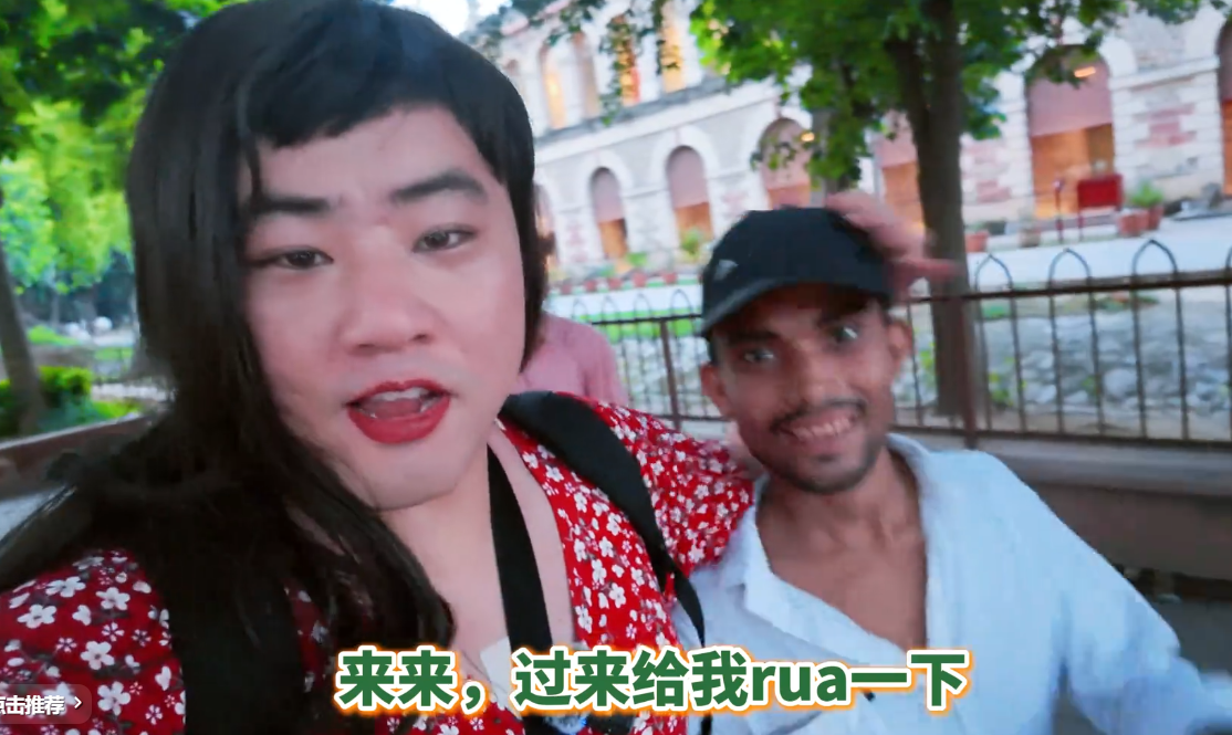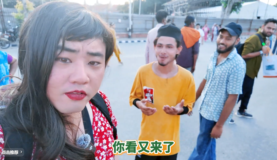 据了解,这是一个名叫昊哥的奇妙探险博主,正在印度旅游,当天他就换了一身女性的装扮,涂上了粉底液,戴上了假发,还化了精致的妆容,还穿了一件红色的碎花裙,在人群当中非常亮眼。