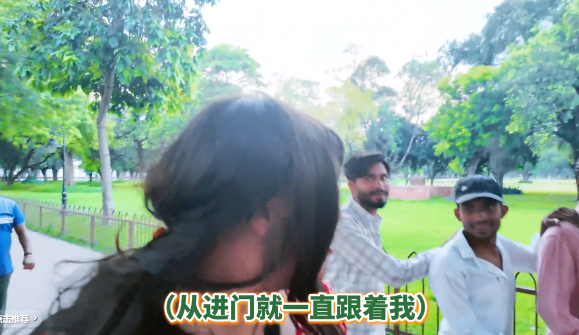 到博主到达红堡后,可以看到周围有很多印度男性向他投来了关注的目光,有两个小商贩向他搭讪,但是博主一开口,那粗大的嗓门儿直接把那两个人吓跑了。