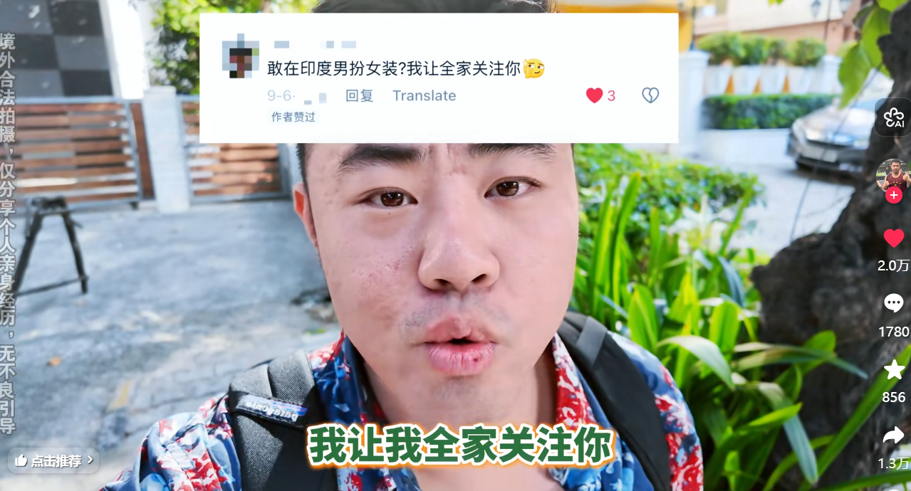 不得不说,博主真的是太勇敢了,大概也是全网唯一一个敢在印度挑战男扮女装的人吧。不少网友看到博主的挑战后,都纷纷称赞他真是太勇敢了,因为在印度,哪怕是男性,有时候也并不安全。