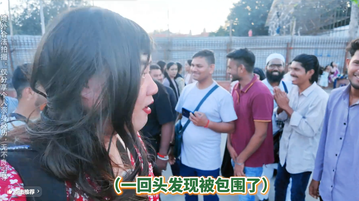 见有人上去搭讪博主了,不一会儿,博主身后就围满了10多个印度男人,纷纷想要合影,场面一发不可收拾。