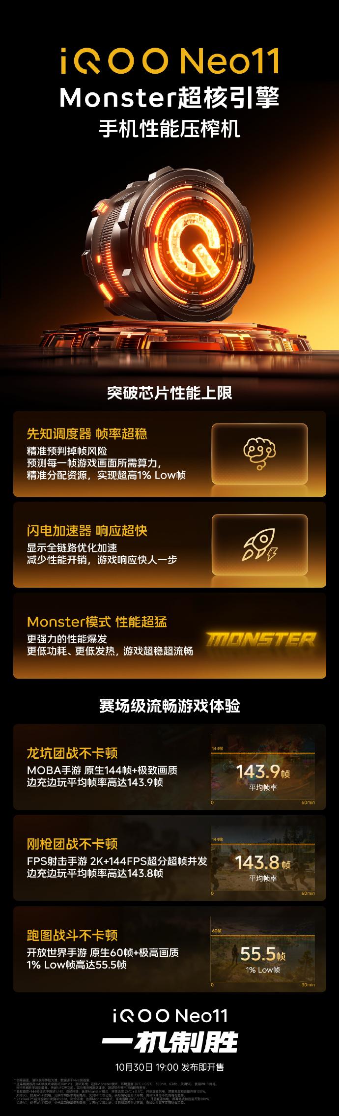 性能层面,iQOO Neo11搭载Monster超核引擎,通过“先知调度器”预判帧率波动、“闪电加速器”优化显示链路,以及全新的“Monster模式”释放更强性能。官方数据显示,其在多款主流游戏中可实现高画质、高帧率稳定运行,即便边充边玩,帧率表现也依旧出色。配合“口碑旗舰芯”骁龙8至尊版与自研电竞芯片Q2,iQOO Neo11试图在游戏体验上突破同平台性能上限。