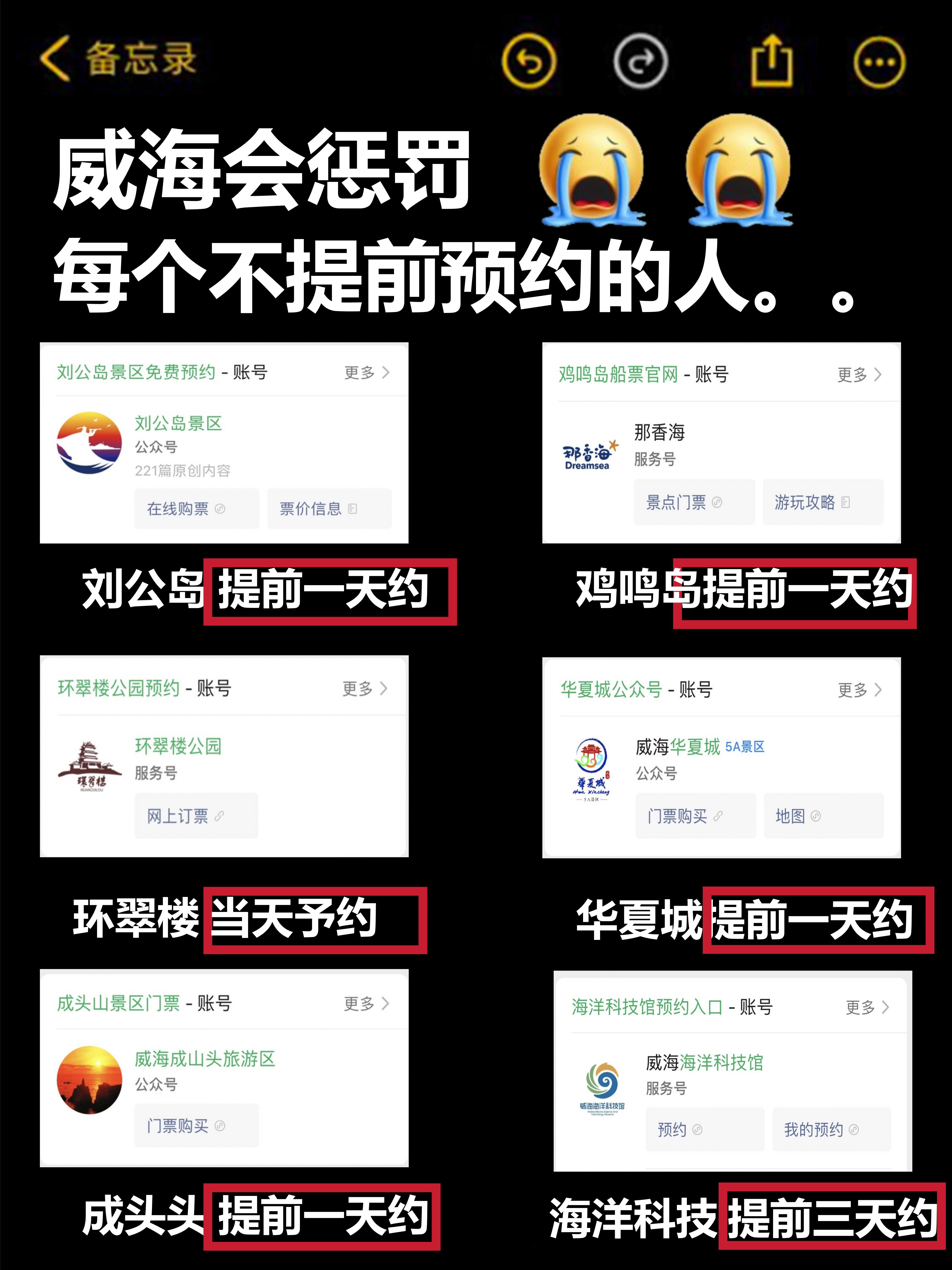 家人们谁懂啊!来威海不提前预约真的会错过很多精华景点啊😭暑期要来威海的宝子,快收好这份威海游玩实用版攻略!祝大家玩的开心!