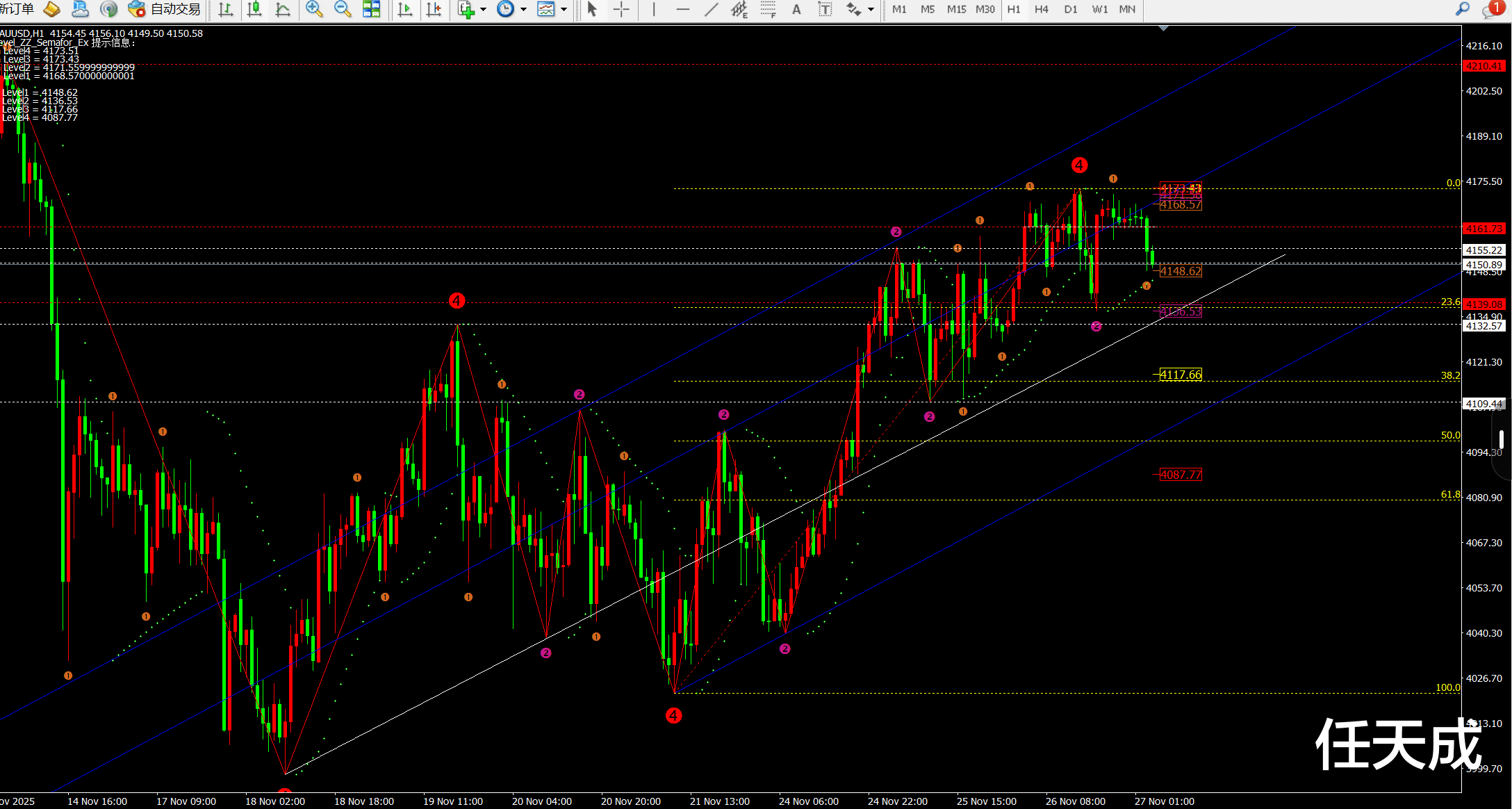 【1】4150附近轻仓多,防守8个点,目标看4160-4170-4190