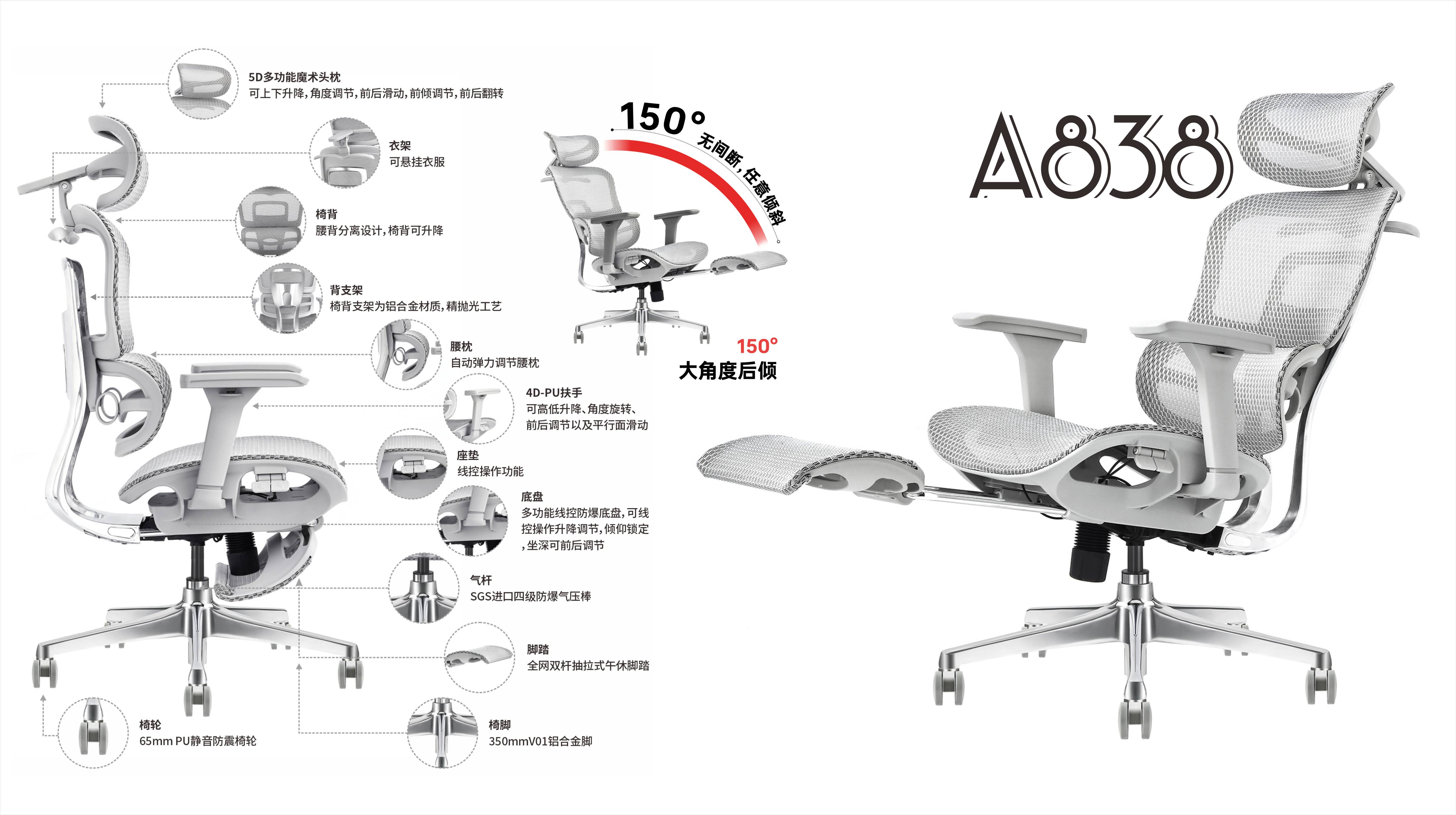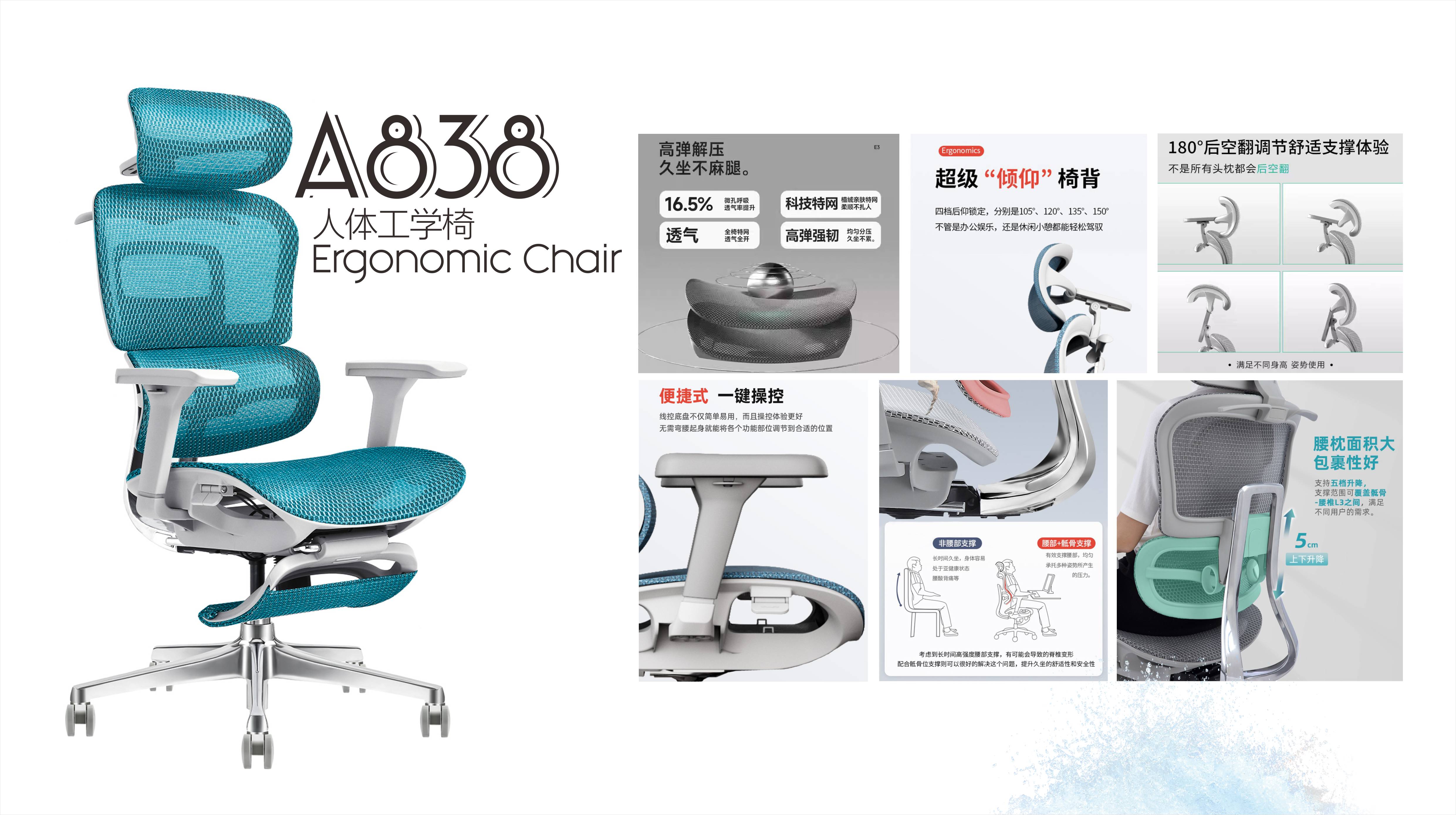 针对久坐人群的肩颈、腰背痛点,AY838在人体工学设计上做了深度优化,每一处调节都贴合身体需求,让“久坐不累”成为可能。