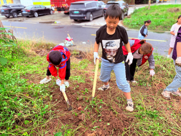 在大家的共同努力下,原本杂草丛生的荒地彻底改头换面,土粒被翻耕得细如筛过的面粉,一脚踩下去,松软的地表轻轻下陷,像在给人们回应一个温柔的拥抱。阿姨俯身抓起一把泥土,在掌心慢慢捻开,向孩子们展示什么叫“刚刚好”——指缝间能聚起一团,松开又能自然散落,这才是土地最易苏醒的状态。志愿者与孩子们拉钩许下“绿色约定”:等到土地被养得蓬松油亮,再一起播下第一粒种子,收获时包一顿“丰收饺子”,让今天的汗水在舌尖上开花。此刻,种子仍在袋中沉睡,却无人心急——因为孩子们已懂得,真正的农耕从学会等待开始。