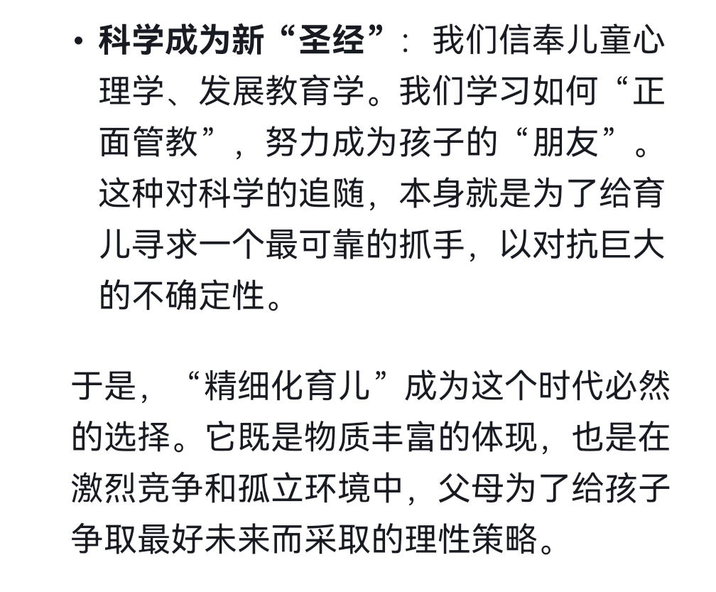 最好的状态是在两者间找到一种平衡:拥有现代父母的科学与细致,也为孩子保留一份往昔的自由与野趣。 在确保安全的同时,偶尔也允许他们摔一身泥巴;在规划未来之外,也留出空间让他们单纯地享受一个无所事事的午后。