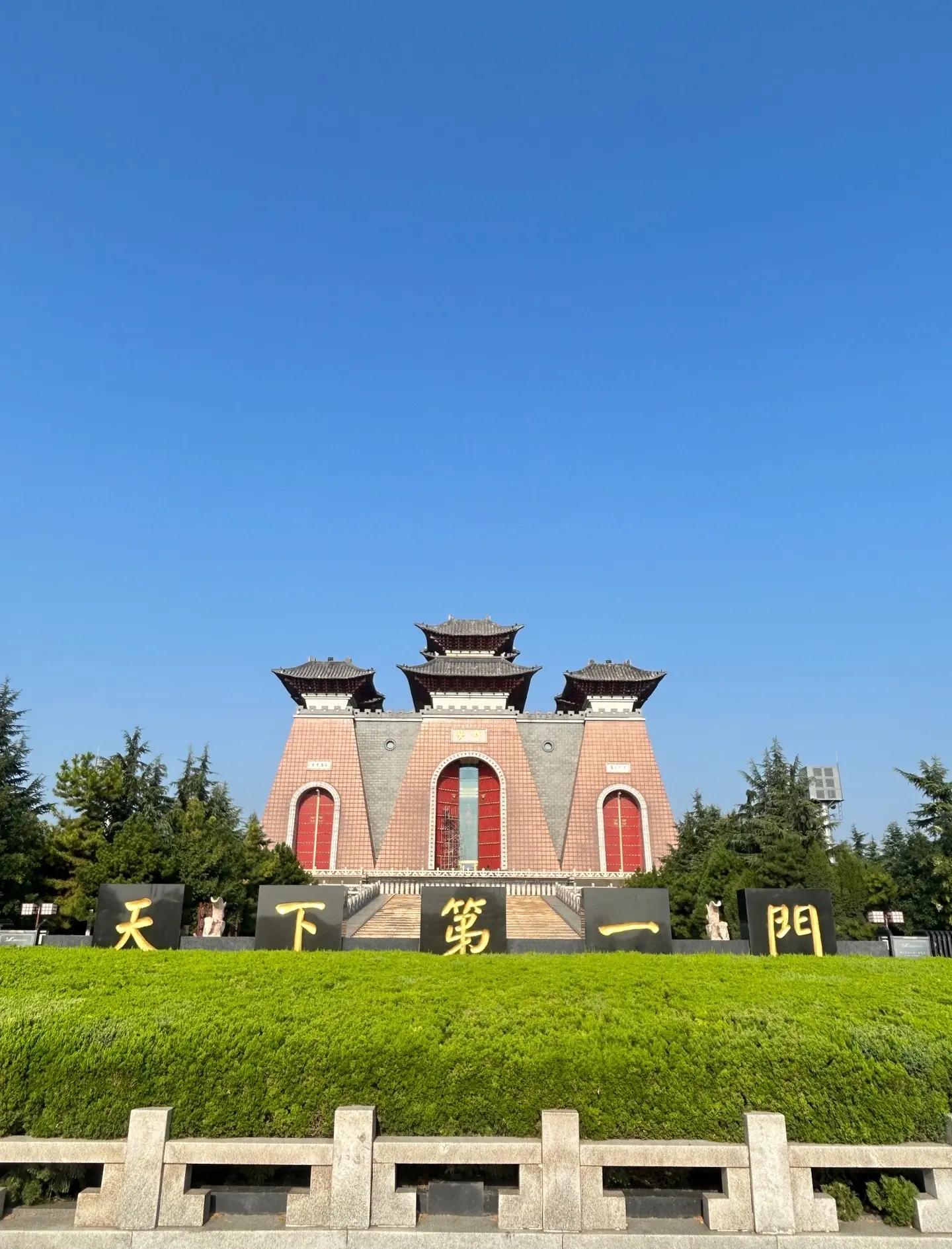 "站在华门顶层观景台,56米高的门楼在阳光下巍峨耸立,檐角的铜铃随风轻响。孩子指着门楣上的‘华夏文明纪念碑’问:‘妈妈,