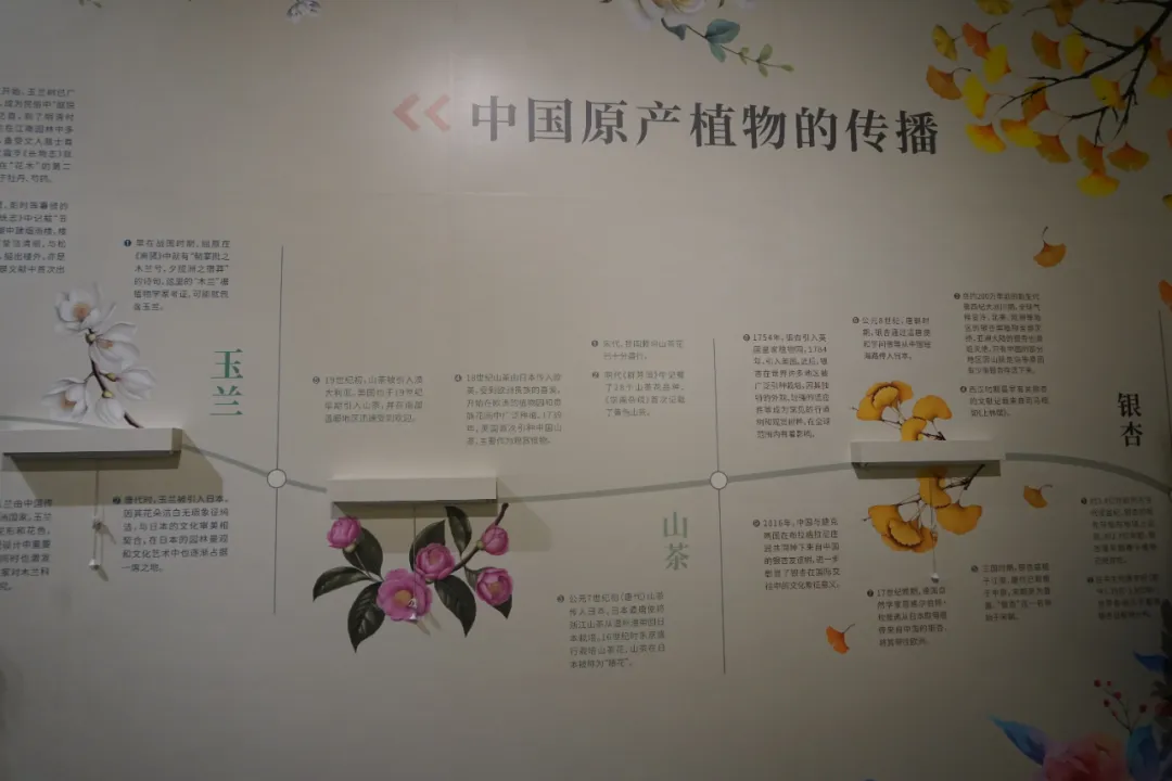 此外,还有大量精美展品与珍稀古籍,有力论证中国植物资源的全球价值。银杏、玉兰、月季、山茶、黄皮、柿子等中国原生植物传入西方,极大丰富了世界园林物种多样性,成为西方园林不可或缺的元素;中国植物的引种需求直接刺激了西方温室技术革新、植物分类学进步及彻底改变活体植物运输命运的发明(沃德箱);中国古籍则为西方植物学提供了重要知识来源;中国植物纹饰与园林意象深刻影响了欧洲的装饰艺术、绘画风格乃至园林设计理念,催生了席卷欧洲的“中国风”(Chinoiserie)。