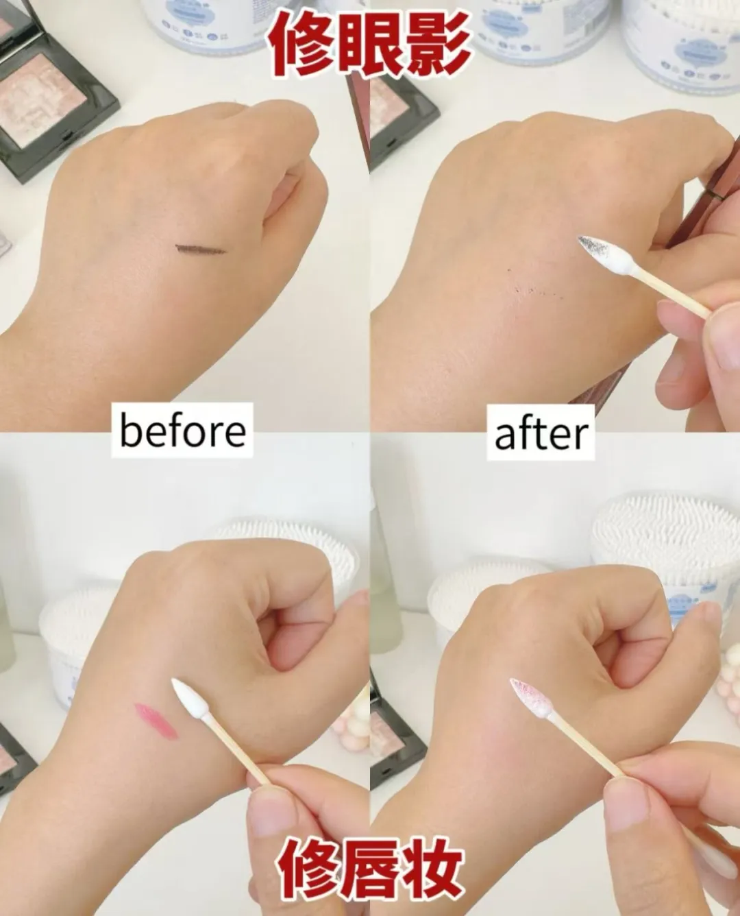 比如大家在化妆晕染眼影或者是修唇妆的时候,就可以使用这款婴儿棉签,要比平时的棉签细很多,非常的方便。