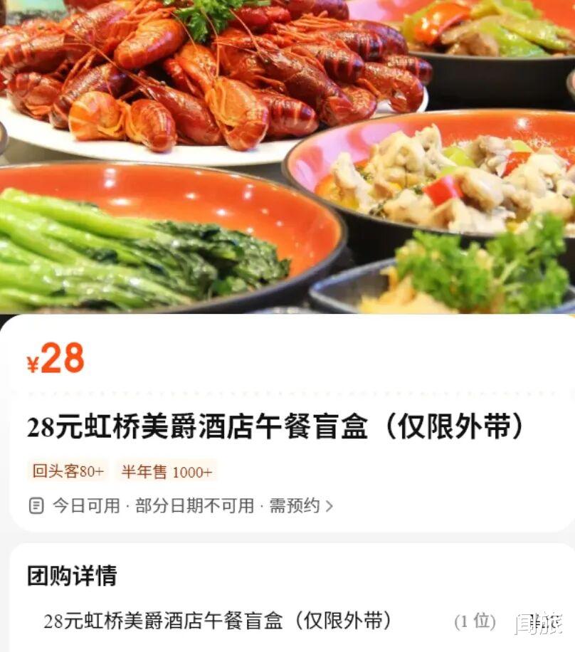 在他之前,上海虹桥雅高美爵酒店的自助餐厅就推出过28元的午餐盲盒。团购详情中显示,午餐盲盒仅限外带,每日六道热菜轮换。