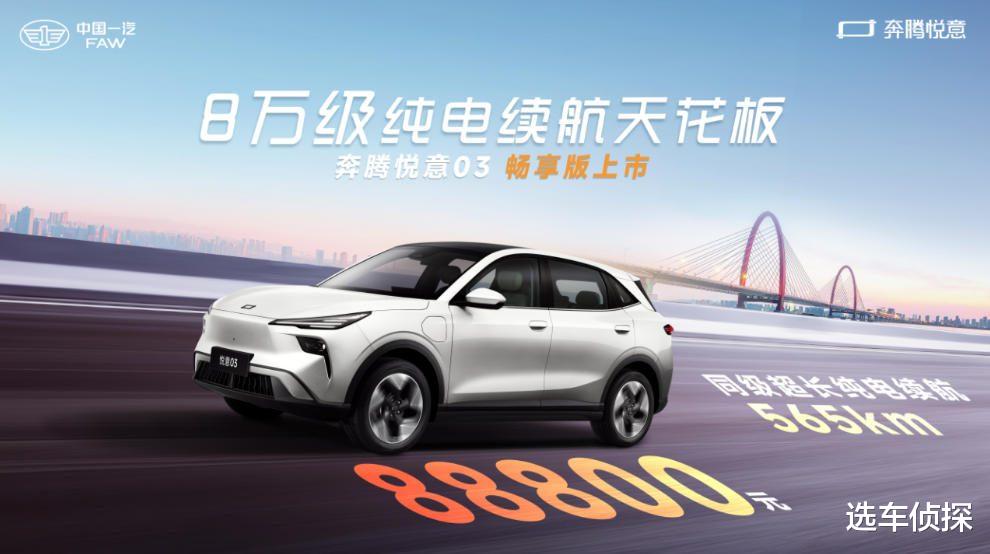 上市以来,奔腾悦意 03收获了大量家庭用户的青睐,续航扎实、空间宽敞、大厂品质被高频提及。此次加推8.88万元565km畅享版,将进一步提升用户在城市全场景出行中的体验。未来,一汽奔腾还将持续推动高品质新能源汽车走进千家万户,为用户的生活增添更多悦意!