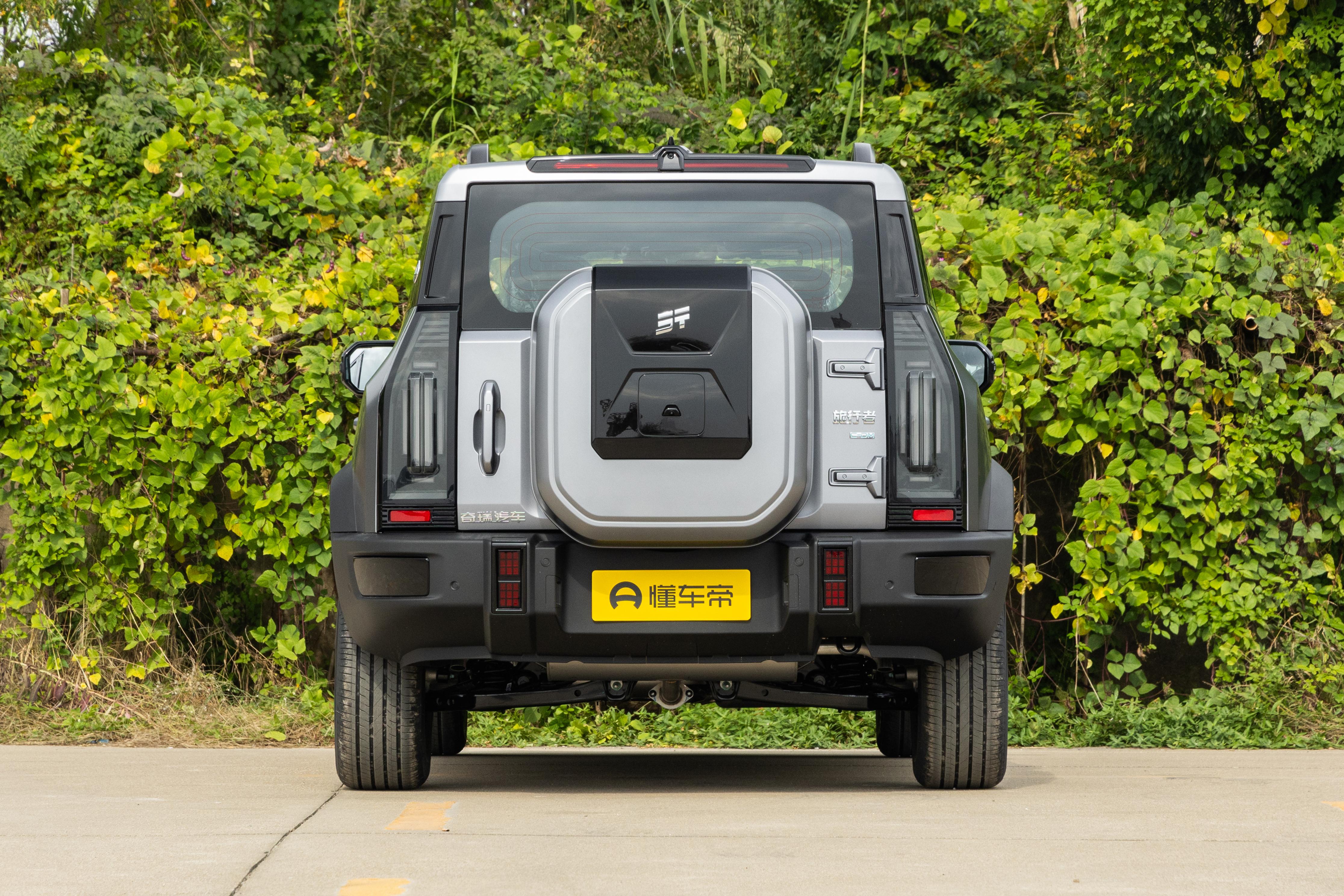 车尾的外挂式备胎和侧开尾门太适合家庭户外出行了,上次在郊外露营,轮胎不小心扎了钉子,多亏了外挂备胎,我自己十几分钟就换好了,不用带着老人孩子在野外等救援。侧开尾门也很方便,双手抱着孩子或者拎着露营装备的时候,轻轻一拉就能打开,不用特意放下东西再操作。竖向排列的尾灯和前大灯呼应,整车造型很协调,尾部没有多余装饰,却透着十足的力量感,看着就靠谱。