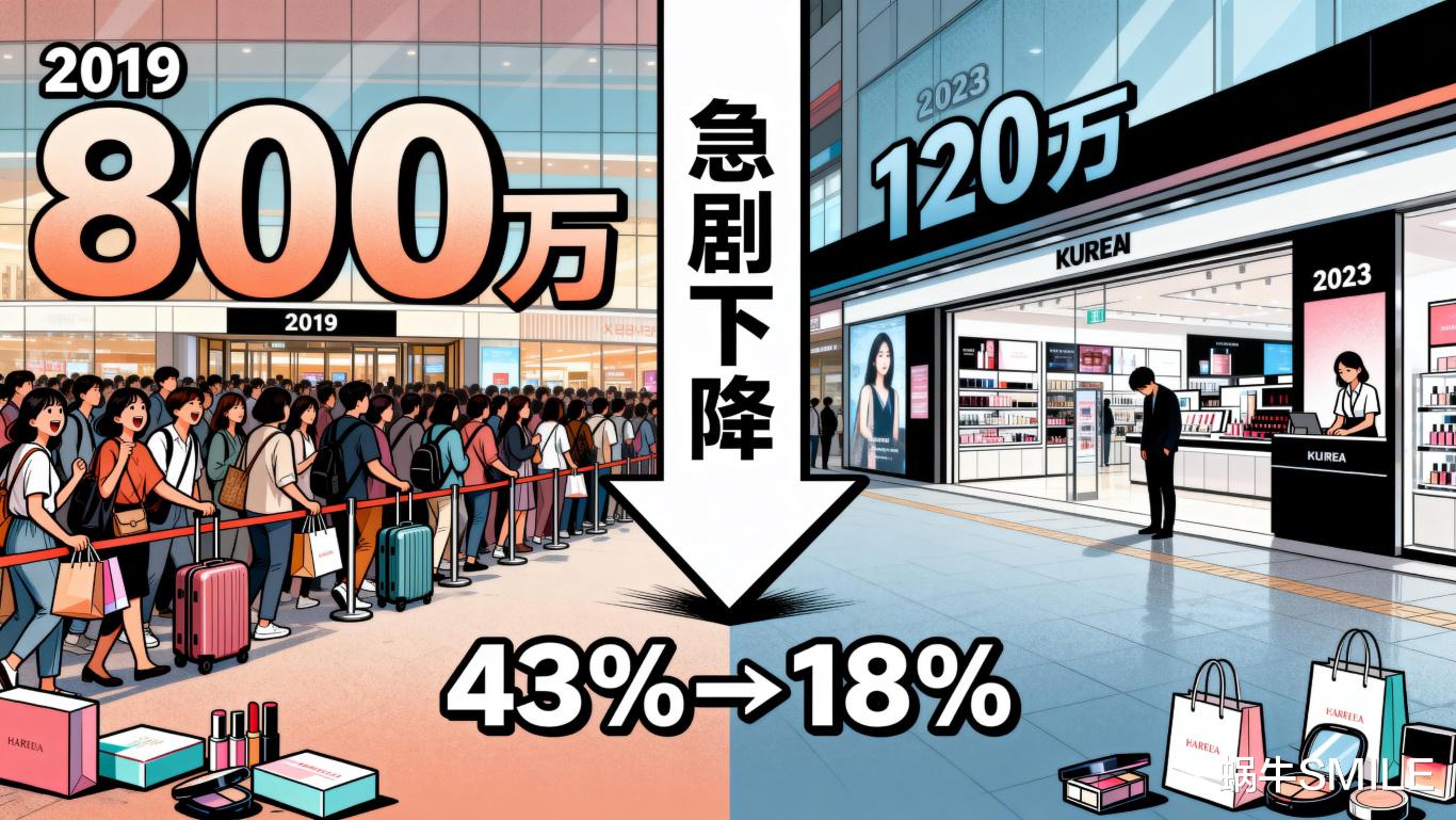 近五年内,中国赴韩国的游客数量从2019年的800万人次急剧降至2023年的不足120万。韩国文旅部的数据表明,即便2024年全面恢复国际旅行,中国游客的占比仍为18%,较疫情前的43%低很多,这也就意味着韩国高端美妆、免税消费、医疗旅游的“金主”群体正在大量流失。