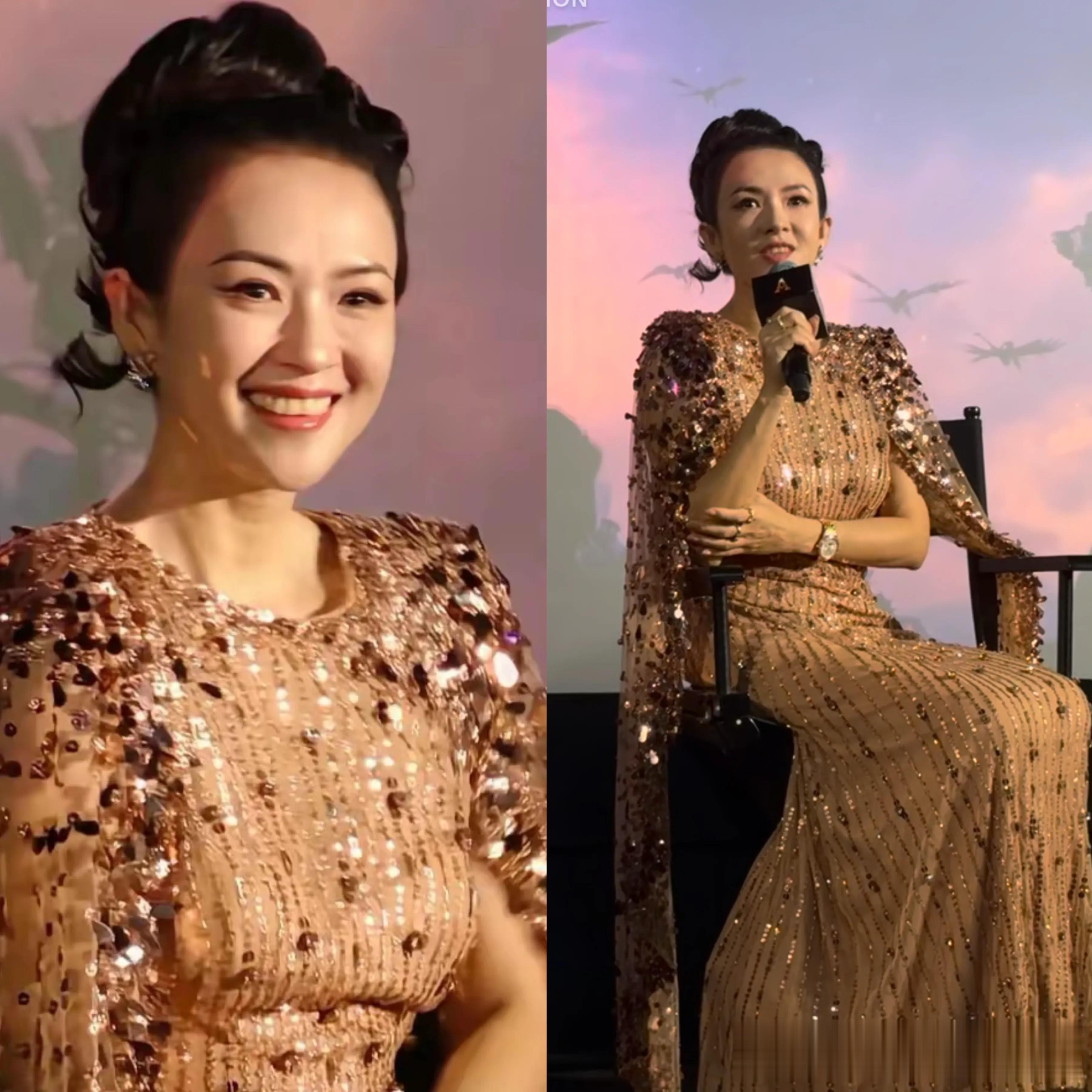 合影环节,就成了章子怡的主场了,用一口流利英语和导演交流的她,手舞足蹈,游刃有余,“国际章”真是名副其实。