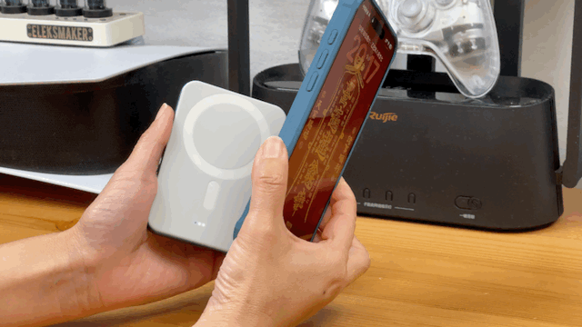 样子够帅,功能也不含糊。当我们用它磁吸上iPhone的时候,就会显示充电的动图。
