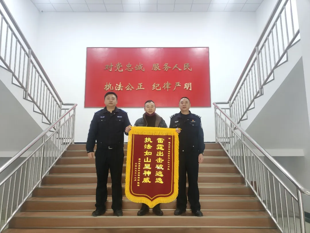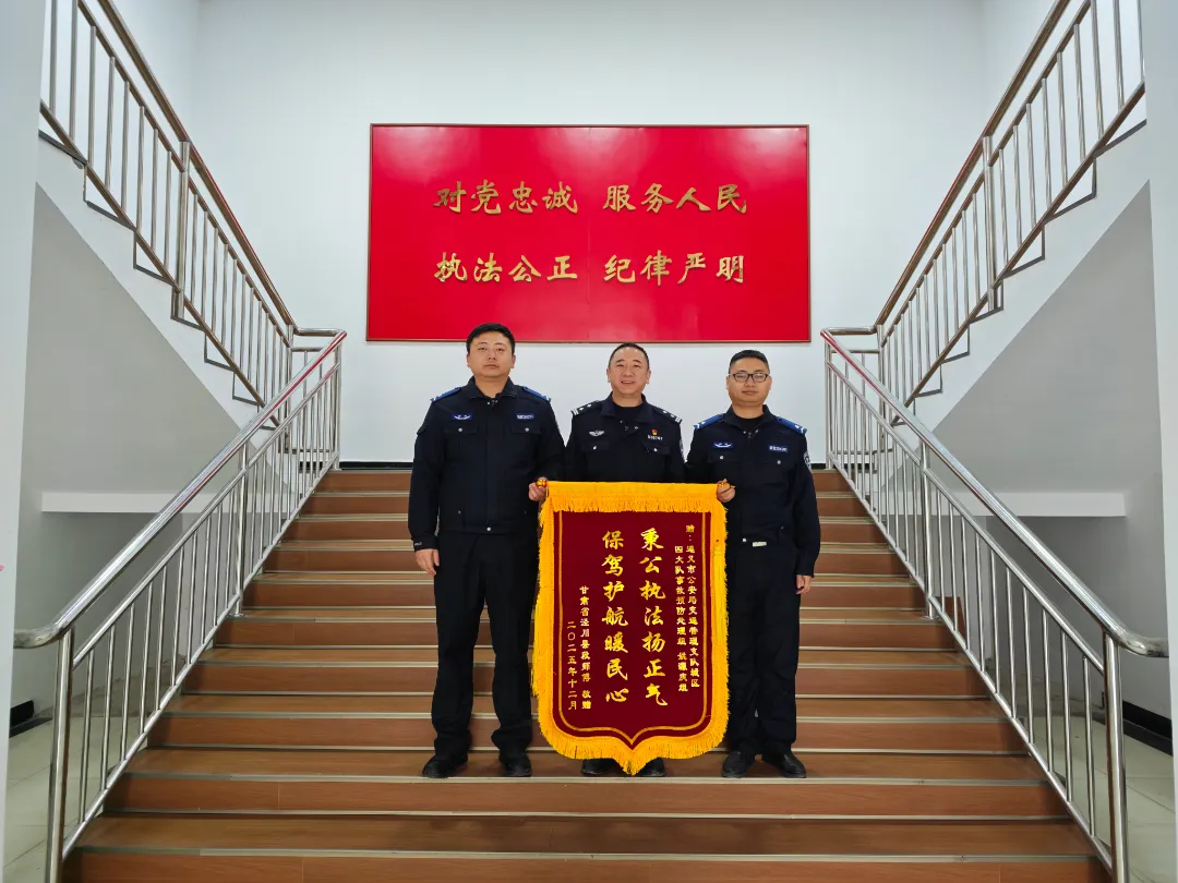 2026年元旦当日,大队收到一份从甘肃省泾川县跨越千里寄来的特殊礼物,一面写有“秉公执法扬正气,保驾护航暖民心”的锦旗。