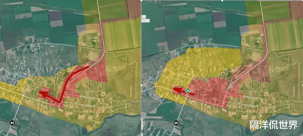 而俄军在整个接触线上就在库拉霍夫的安德里夫卡取得了一点儿领土收益。具体见下图。