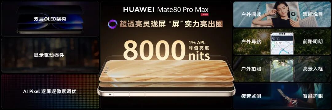 一部旗舰手机,除了全新的能力,创新的突破,它的综合能力一定是强大而完善的,Mate 80系列在屏幕、续航和影像上又有了新突破,代表了旗舰产品的高水平。