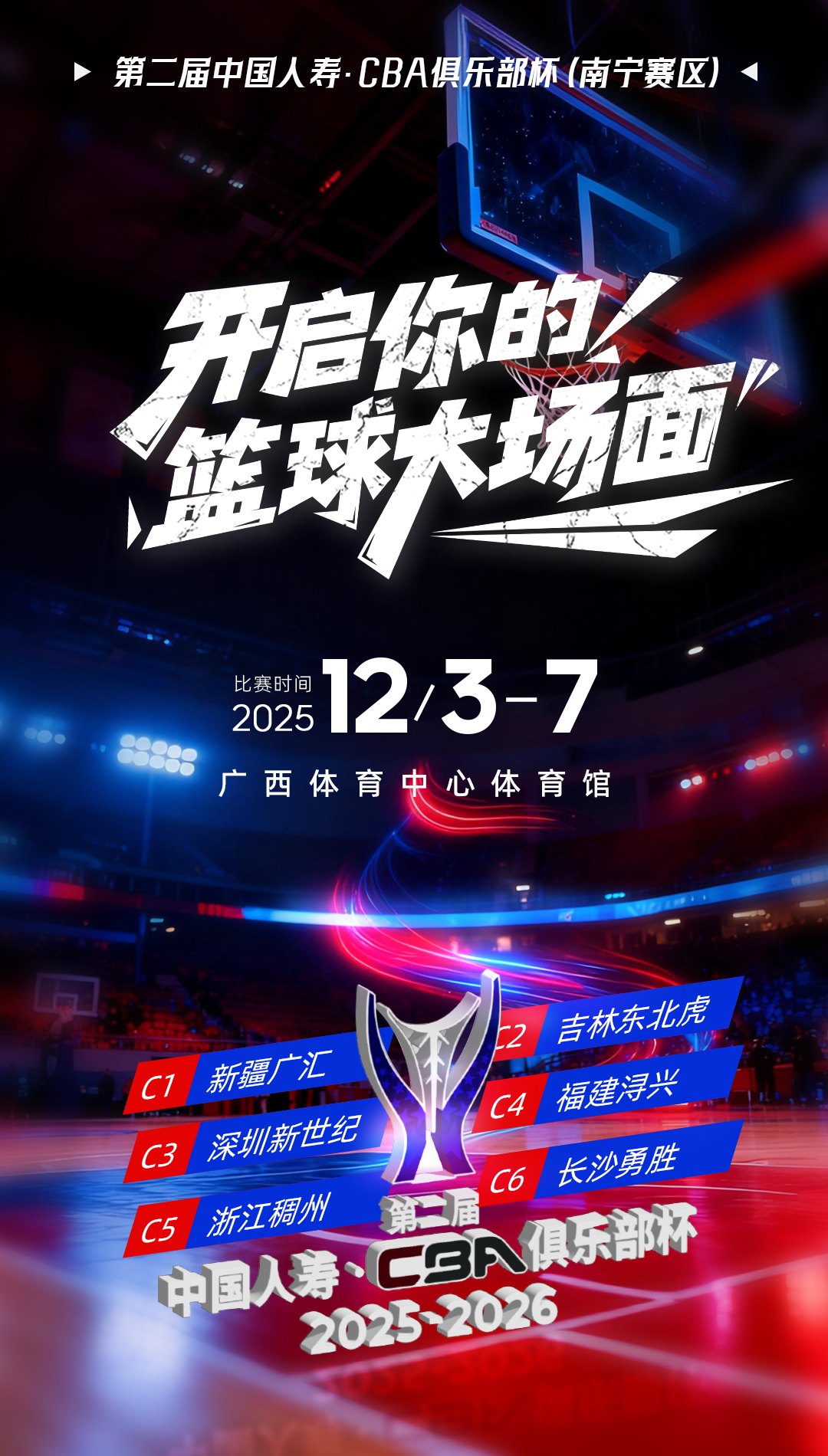 多元碰撞,悬念丛生!12月3日-7日,第二届中国人寿·CBA俱乐部杯C组小组赛将为南宁市民带来高水平体育享受。广大球迷密切关注官方发布的购票信息,锁定黄金观赛席位,亲临现场为喜爱的球队呐喊助威!让我们共同见证篮球竞技的魅力与城市体育的活力!