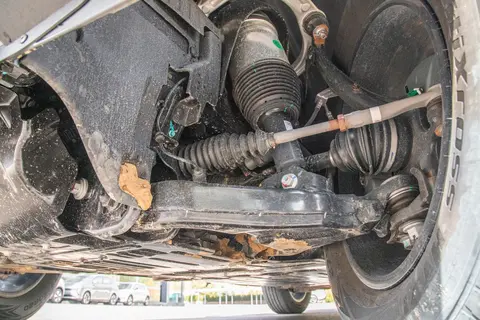 底盘方面,纵横G700配备了前后双叉臂悬架和CDC可变阻尼减震器,能根据实时路况自动调整减震硬度,走烂路时能过滤掉大部分颠簸,减少车内的颠簸感;跑公路时又能保持车身稳定,坐起来更舒服,可以说它既能应对复杂路况,又兼顾日常驾驶的实用性。