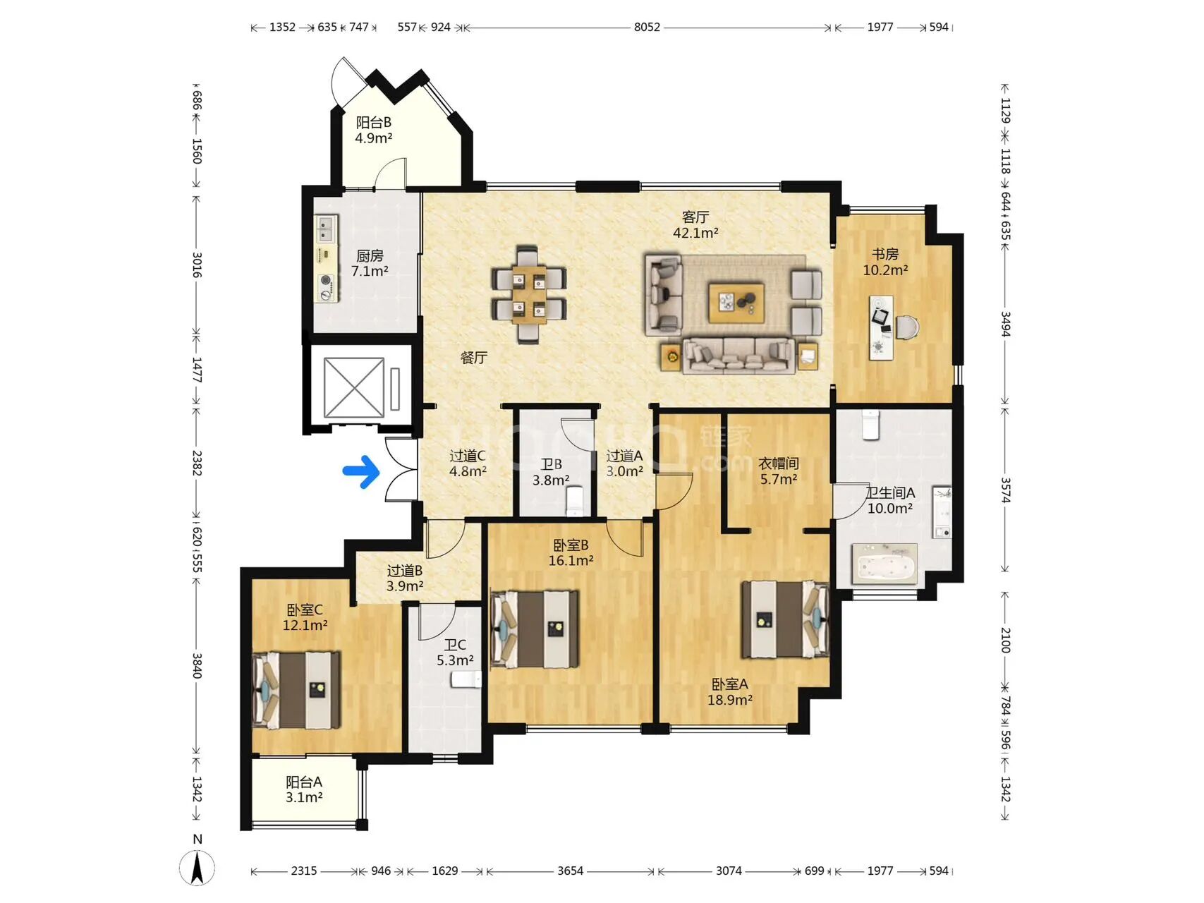 💎 核心卖点:稀缺四房+价格惊喜,税费纯净即买即住本次推介的邑滨江195.43㎡四房房源,为小区内唯一在售的四房户型,