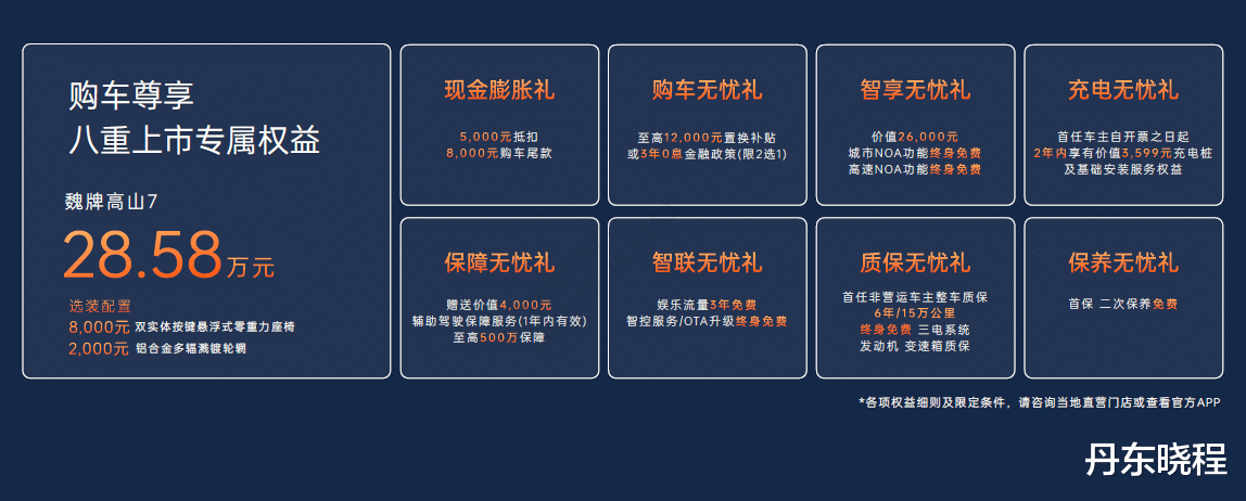 为让用户轻松畅享豪华家庭出行,高山7不仅拥有诚意满满的价格,更准备了包含“5000元抵扣8000元购车尾款”、“至高12000元置换补贴或3年0息金融政策”、“价值26000元的城市及高速NOA功能终身免费”等丰厚的八重上市专属权益。