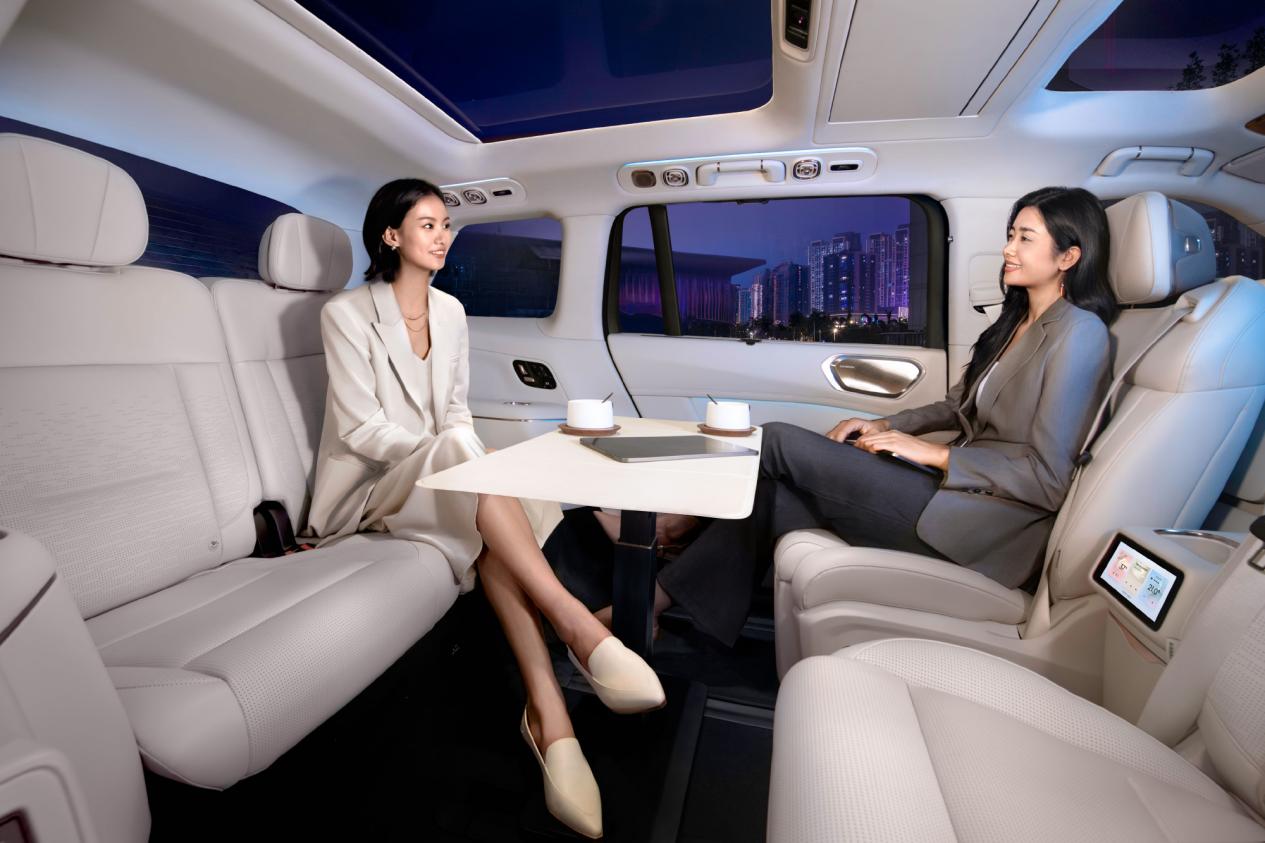二排座椅支持双180°电动旋转,可面对第三排进行互动,也可向外旋转90°方便老人上下车或安装儿童座椅。30英寸6K双大屏覆盖前后排,可分屏或共享内容,搭配四音区独立音响,确保全家各自拥有娱乐空间。平地板设计、220V外放电接口和可放平电动天地门,让领克900成为可移动的家庭娱乐中心,而非单纯代步工具。